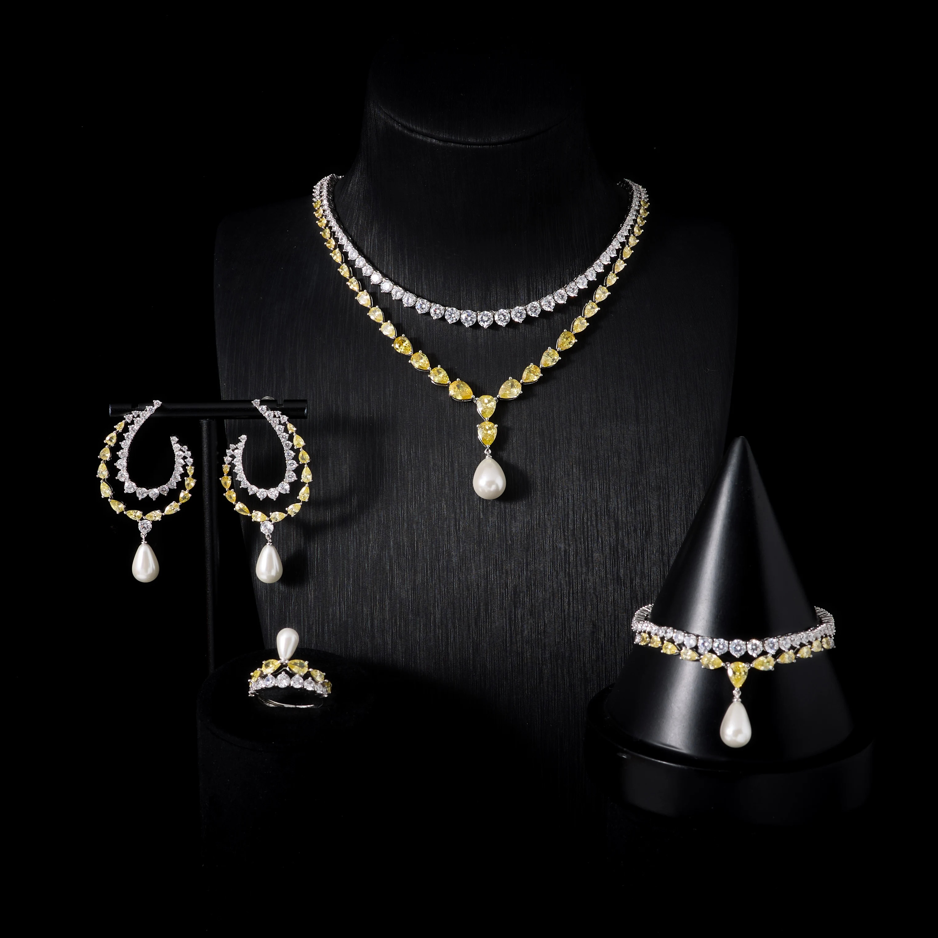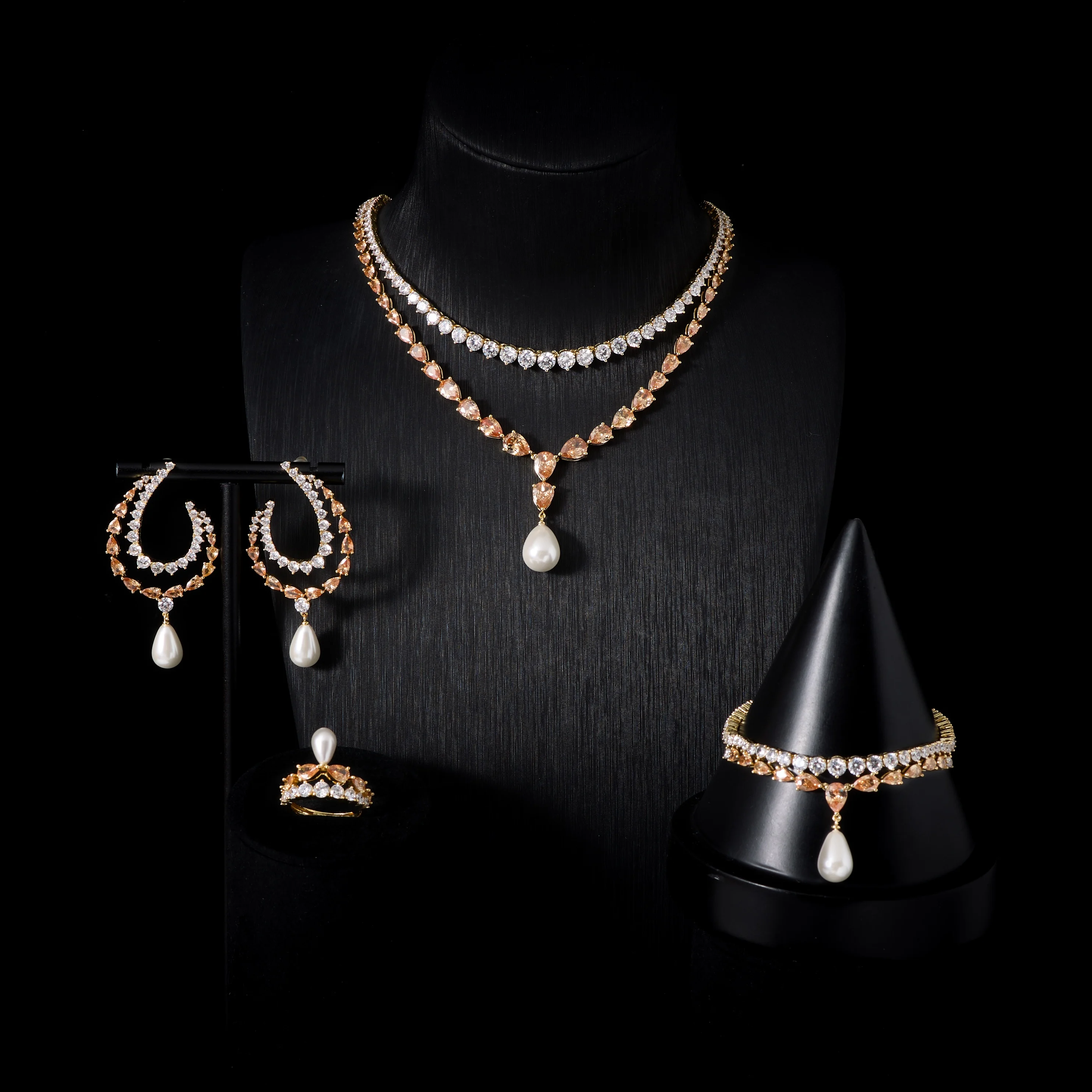 Conjunto de Joyería Nupcial de Cristal TIRIM para Mujer, Collar, Aretes y Pulsera con Circonitas, Ideal para Bodas y Damas de Honor.