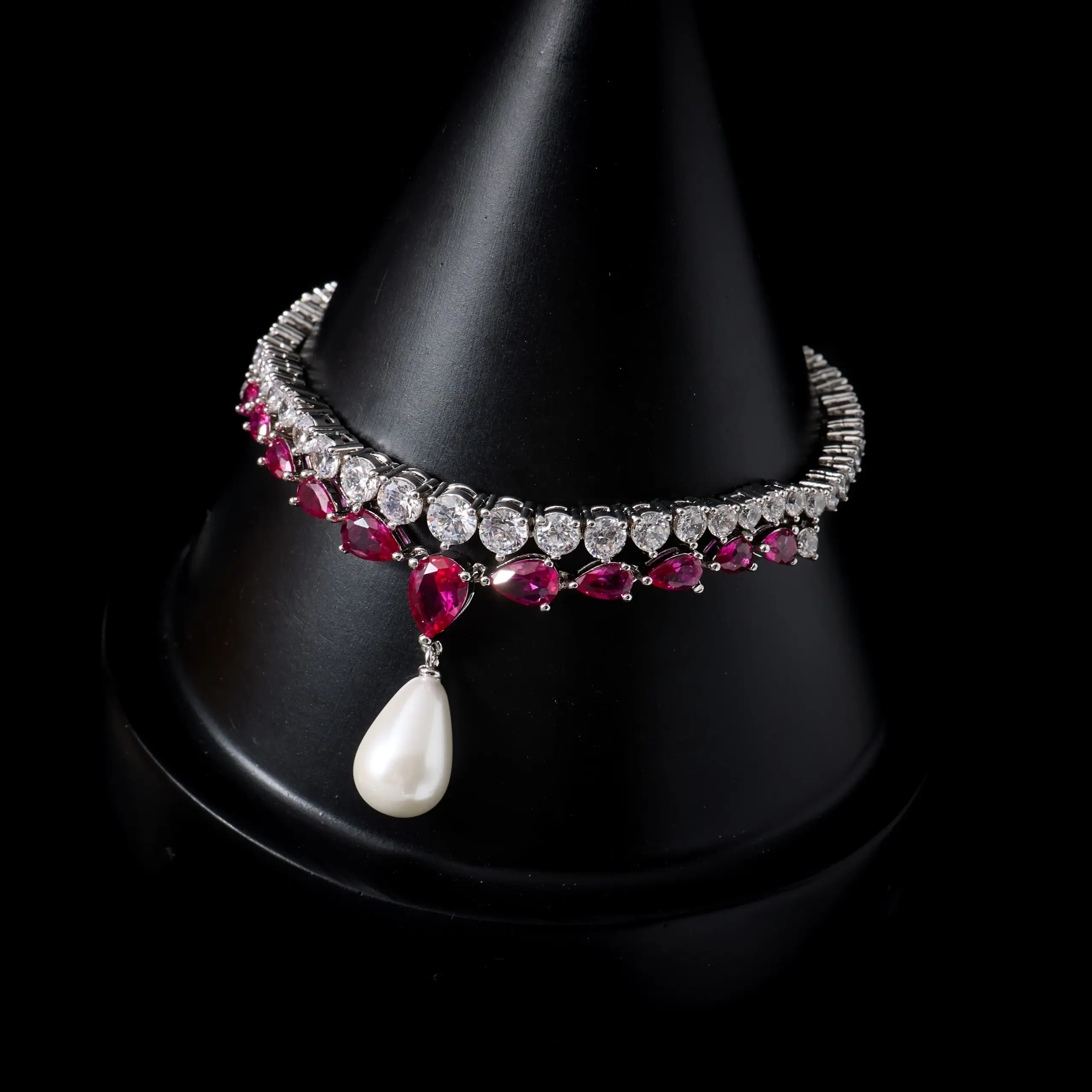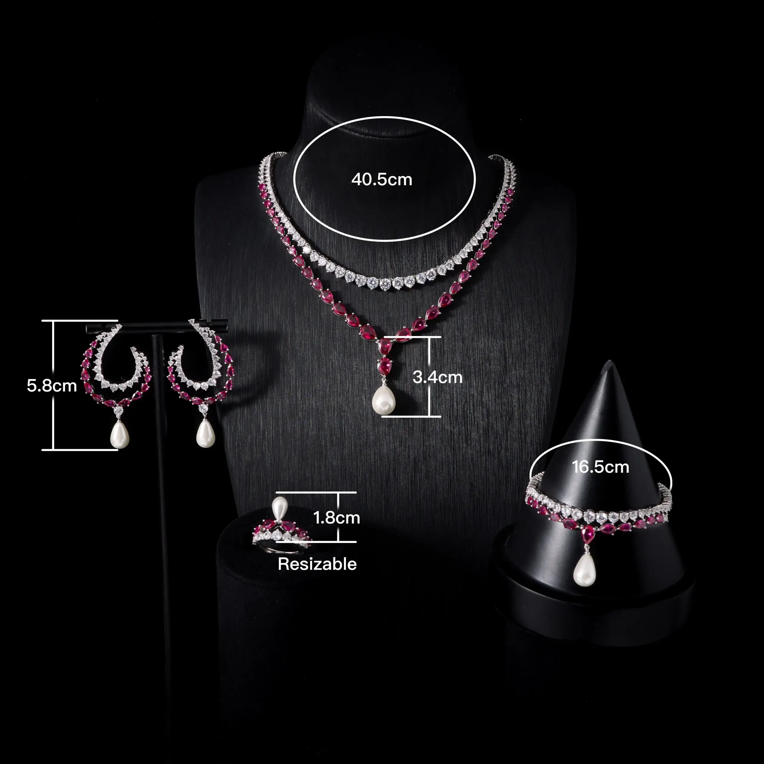 Conjunto de Joyería Nupcial de Cristal TIRIM para Mujer, Collar, Aretes y Pulsera con Circonitas, Ideal para Bodas y Damas de Honor.