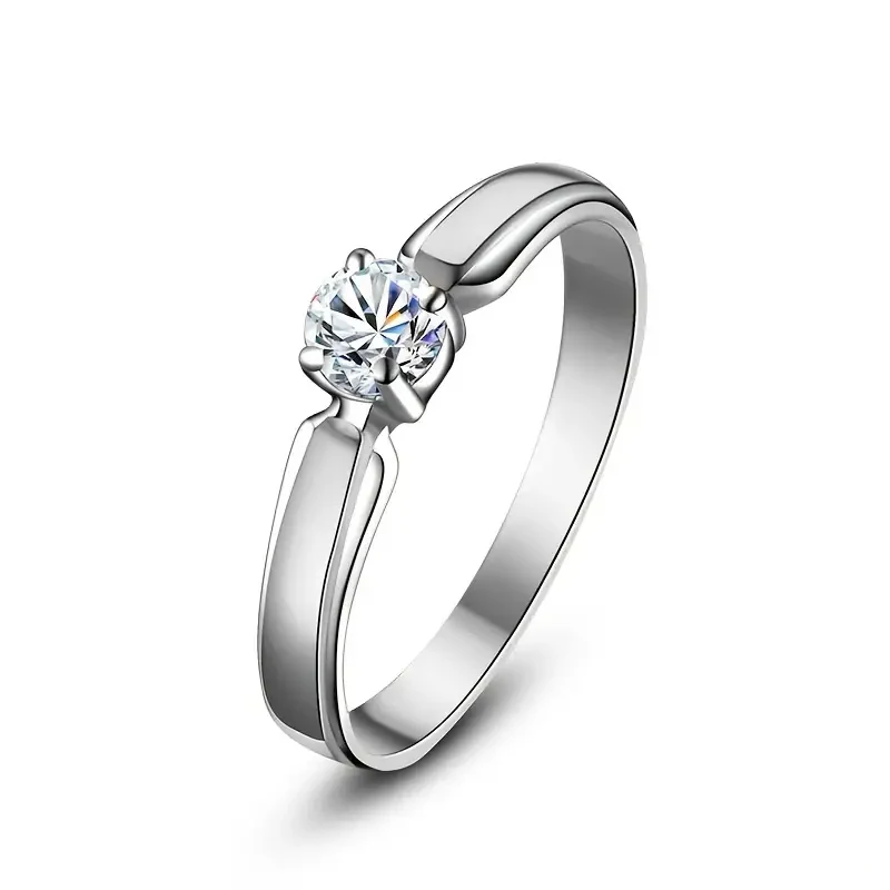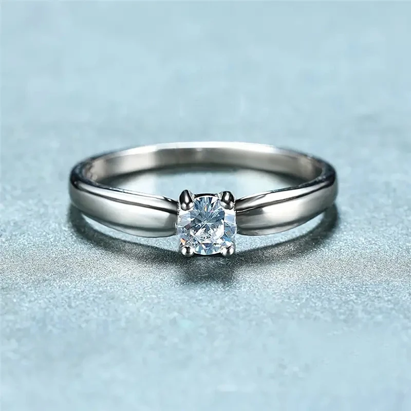 anillos de circón cúbico redondos individuales para mujer, accesorios de compromiso para boda, anillos femeninos simples y elegantes, joyería de moda 1