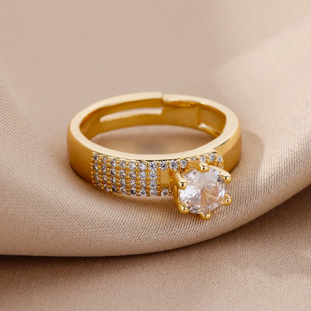 Anillos redondos de acero inoxidable para mujer, anillo geométrico de Color dorado con circonita, joyerÃÂa estética para fiesta de boda, regalo para mujer