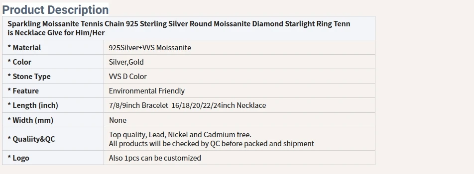 Sé el primero en valorar “Cadena de tenis de moissanita brillante, collar de tenis redondo de Plata de Ley 925 con diamantes VVS Starlight, para él/la”