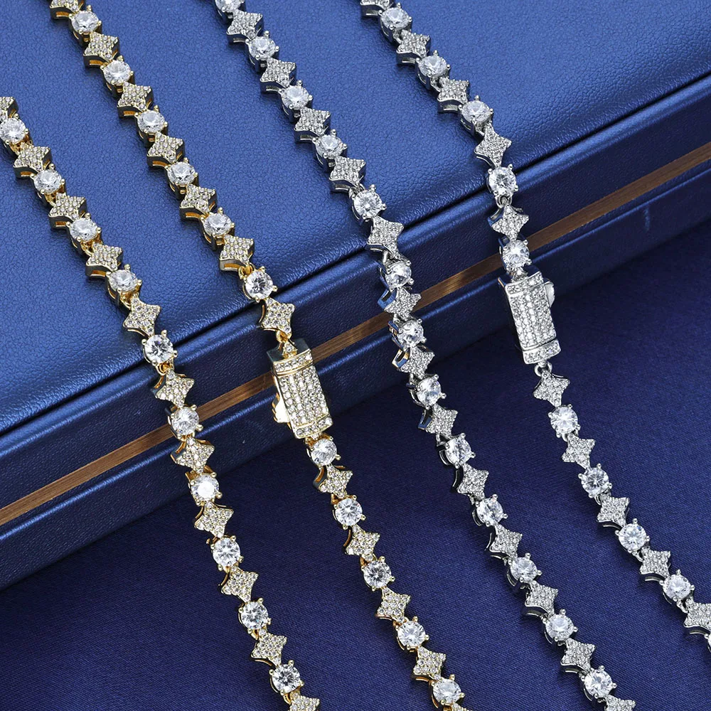 Cadena de tenis de moissanita brillante, collar de tenis redondo de Plata de Ley 925 con diamantes VVS Starlight, para él/la