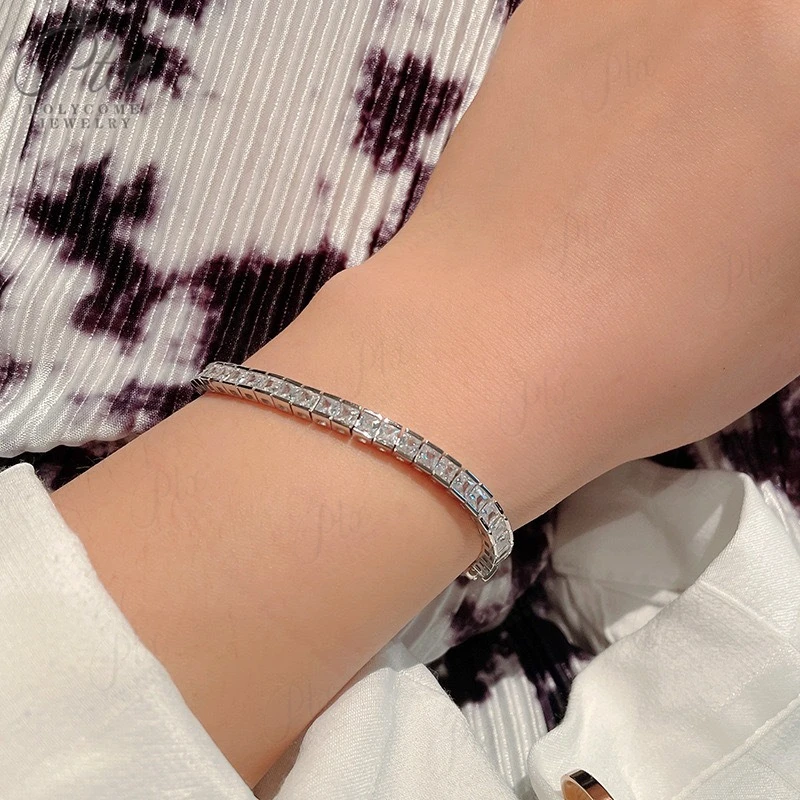 Cadena de tenis de Plata de Ley 925 con circonita cúbica, pulsera de tenis de corte cuadrado de circonia cúbica blanca de 3x3mm, regalo de joyería Unisex para hombre y mujer 2025 1