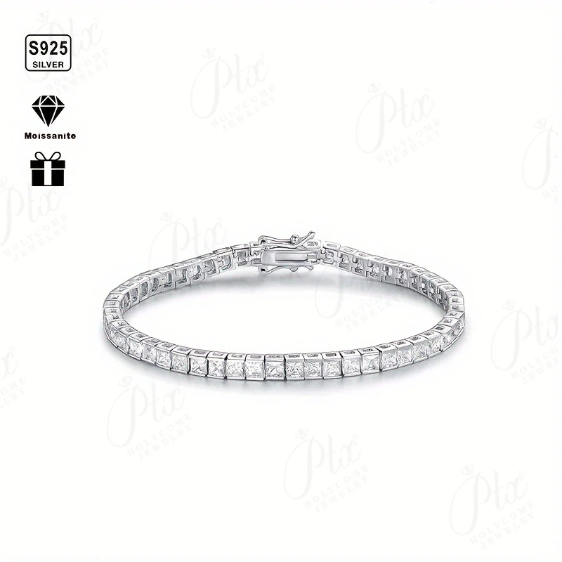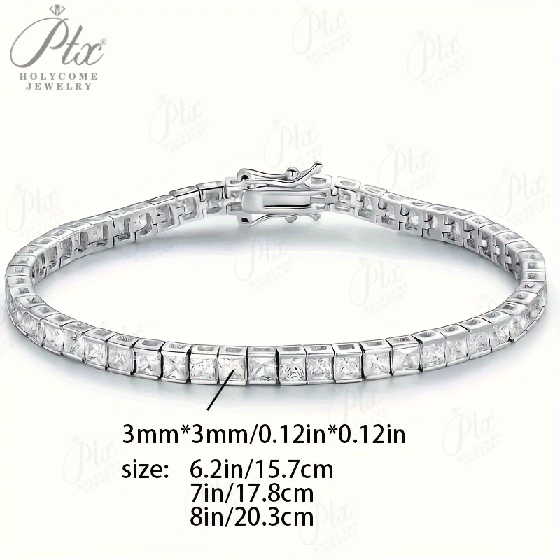 Cadena de tenis de Plata de Ley 925 con circonita cúbica, pulsera de tenis de corte cuadrado de circonia cúbica blanca de 3x3mm, regalo de joyería Unisex para hombre y mujer 2025 1