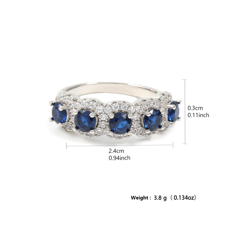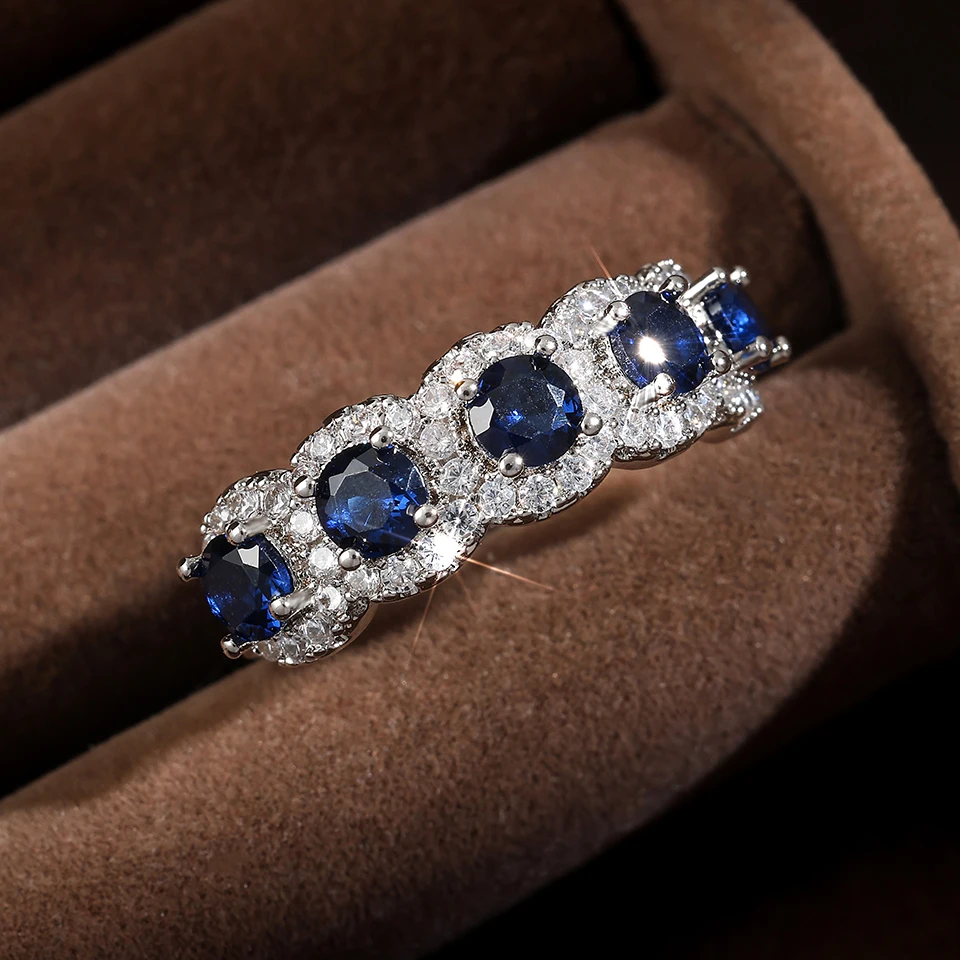 8 valoraciones en Classic-anillos de cobre redondos de circonita cúbica azul para mujeres y niñas, Color plateado, accesorios de dedos de cristal de Metal, regalos de joyería