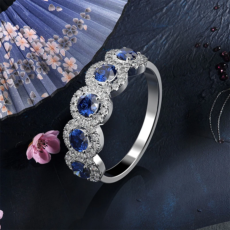 Classic-anillos de cobre redondos de circonita cúbica azul para mujeres y niñas, Color plateado, accesorios de dedos de cristal de Metal, regalos de joyería 1