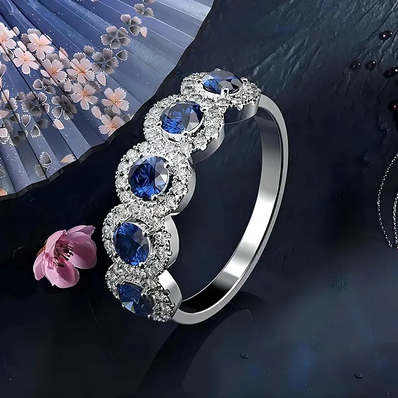 Anillo de zirconia cubano azul :Este anillo de moda presenta un cubano azul de zirconia, que agrega un toque de elegancia y sofisticación a cualquier atuendo.
