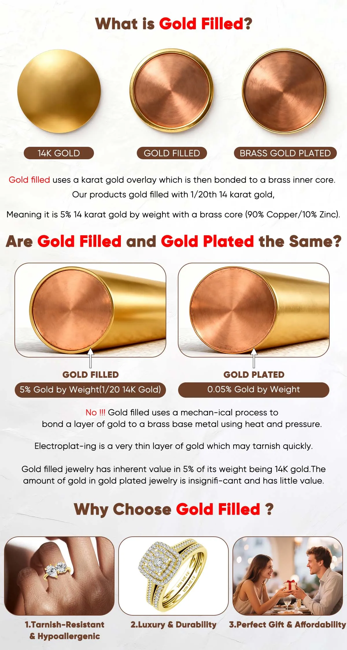 â¤Duradero y duradero: relleno de oro de 14 quilates (1/20 GF de 14 quilates) tiene una capa de oro gruesa (5 % del peso total), 100 – 1000 veces más grueso que el chapado en oro normal.Resiste la decoloración, el desgaste y el sudor, manteniendo su brillo dorado durante años con el cuidado adecuado.
