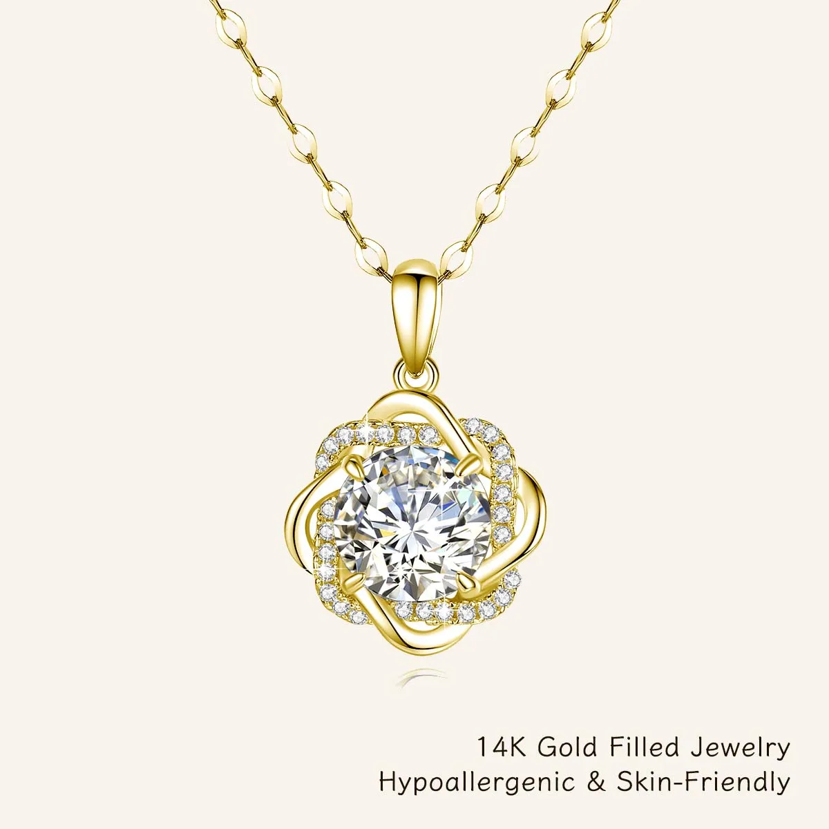 Cuenta con un brillante collar con colgante de flor de moissanita de color D de 3 quilates (1/20 relleno de oro de 14 quilates) con detalles de circón.Esta piedra moissanita ofrece un incendio y una claridad excepcionales, creando un brillo lujoso y llamativo que rivaliza con los diamantes naturales, convirtiéndote en el centro de atención.