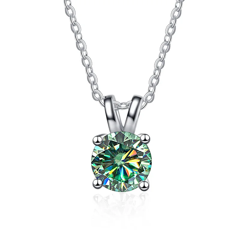 JoyceJelly Round D-COLOR 1/2 Carat Moissanite Diamond Necklace Female Wedding Silver 925 Jewelry Simple Pendant Clavicle Chain