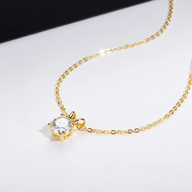 -42%JoyceJelly Round D-COLOR 1/2 Carat Moissanite Diamond Necklace Female Wedding Silver 925 Jewelry Simple Pendant Clavicle Chain