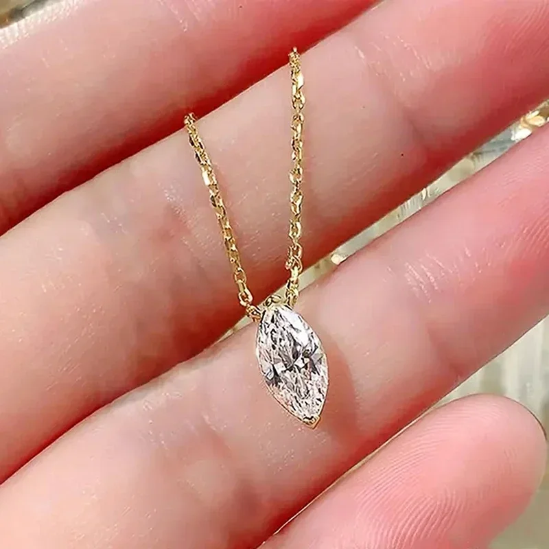 collar de estilo simple con circonita marquesa para mujer, accesorios para ceremonia de compromiso, joyería de lujo de Color dorado para boda 1