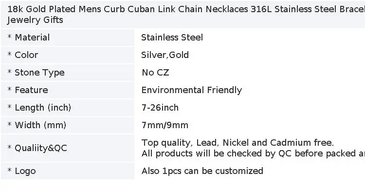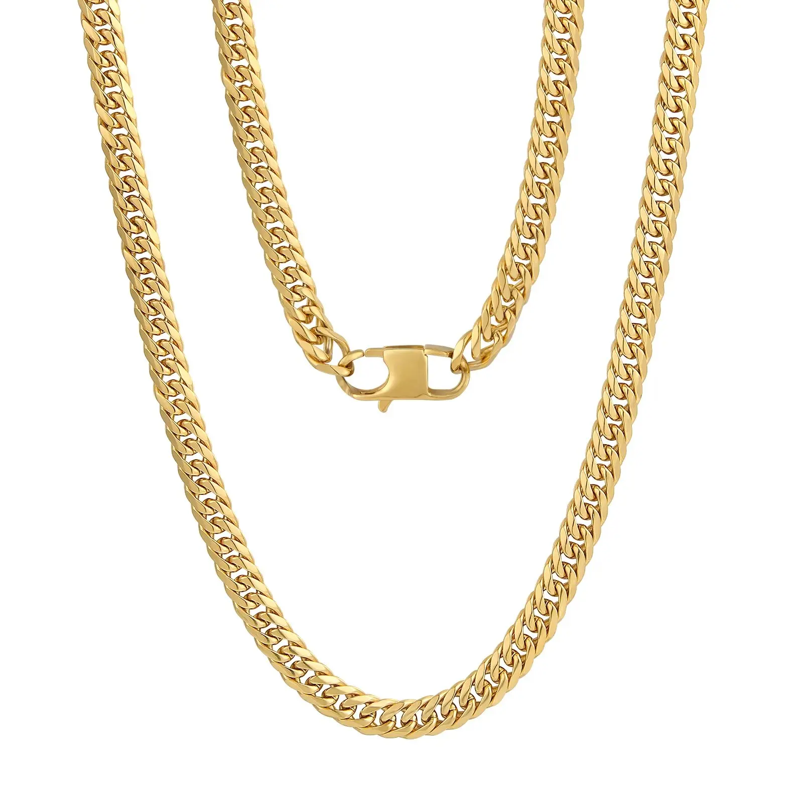 Collares de cadena de eslabones cubanos chapados en oro de 18 quilates para hombre, pulsera de acero inoxidable 316L, regalos de joyerÃa de Hip Hop | |
