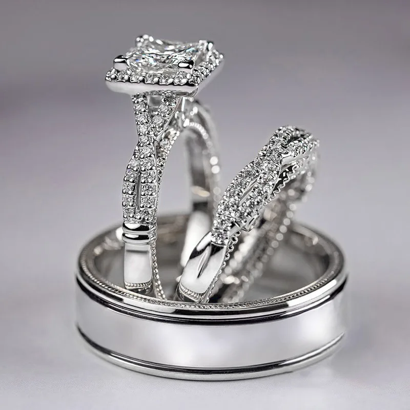Conjunto de anillos de promesa 3 en 1 Vintage de oro de 14 quilates, anillos de compromiso con diamantes de laboratorio para mujeres y hombres, joyería de fiesta