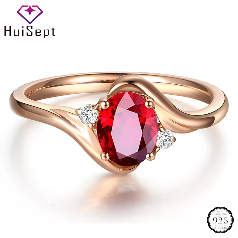 HuiSept Elegante anillo de joyerÃÂa de plata 925 para mujer Forma ovalada Piedras preciosas de circón con rubàColor oro rosa Anillos abiertos Adornos para fiesta de boda al por mayor