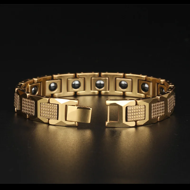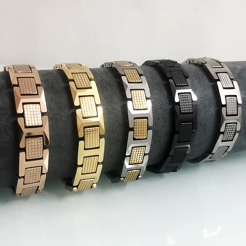 En ventas, pulsera de hombre de acero de tungsteno pulido alto, regalos, pulseras para mejores amigos para hombres con piedra magnética de germanio negro saludable 1
