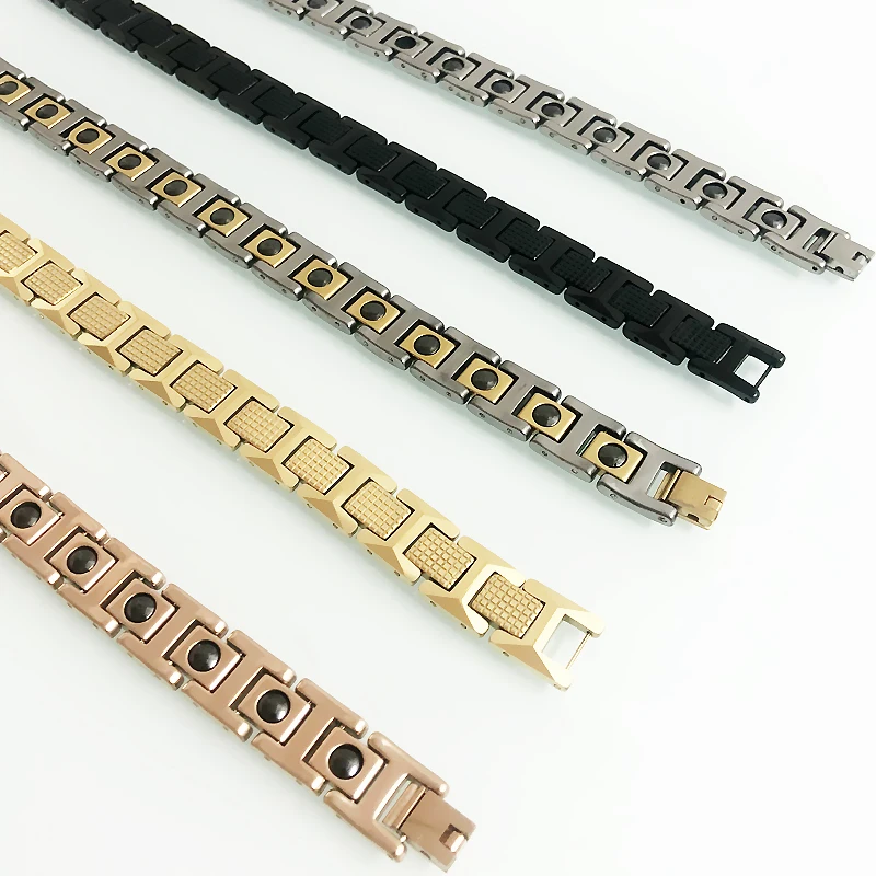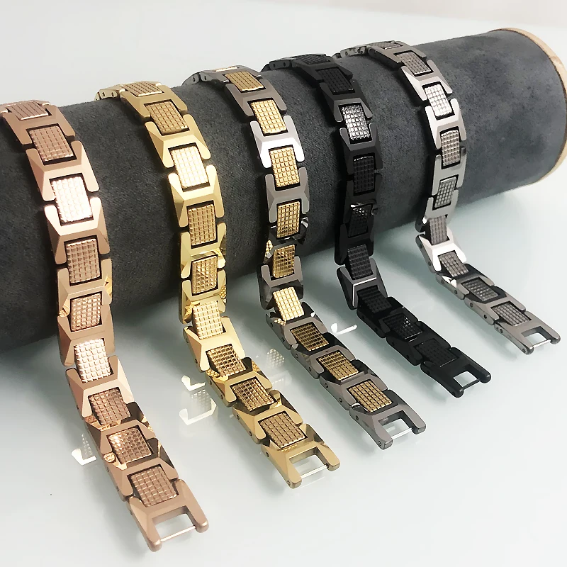 5 valoraciones en En ventas, pulsera de hombre de acero de tungsteno pulido alto, regalos, pulseras para mejores amigos para hombres con piedra magnética de germanio negro saludable
