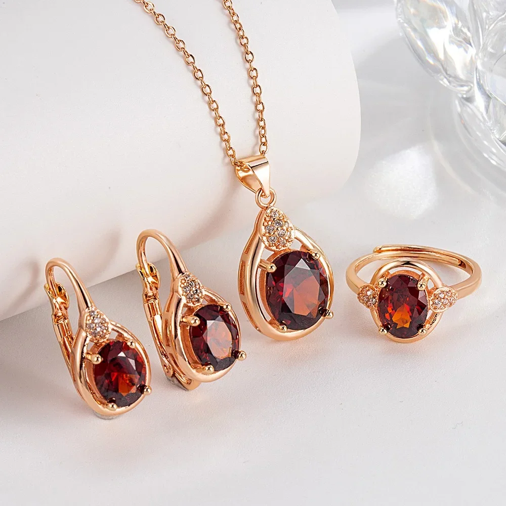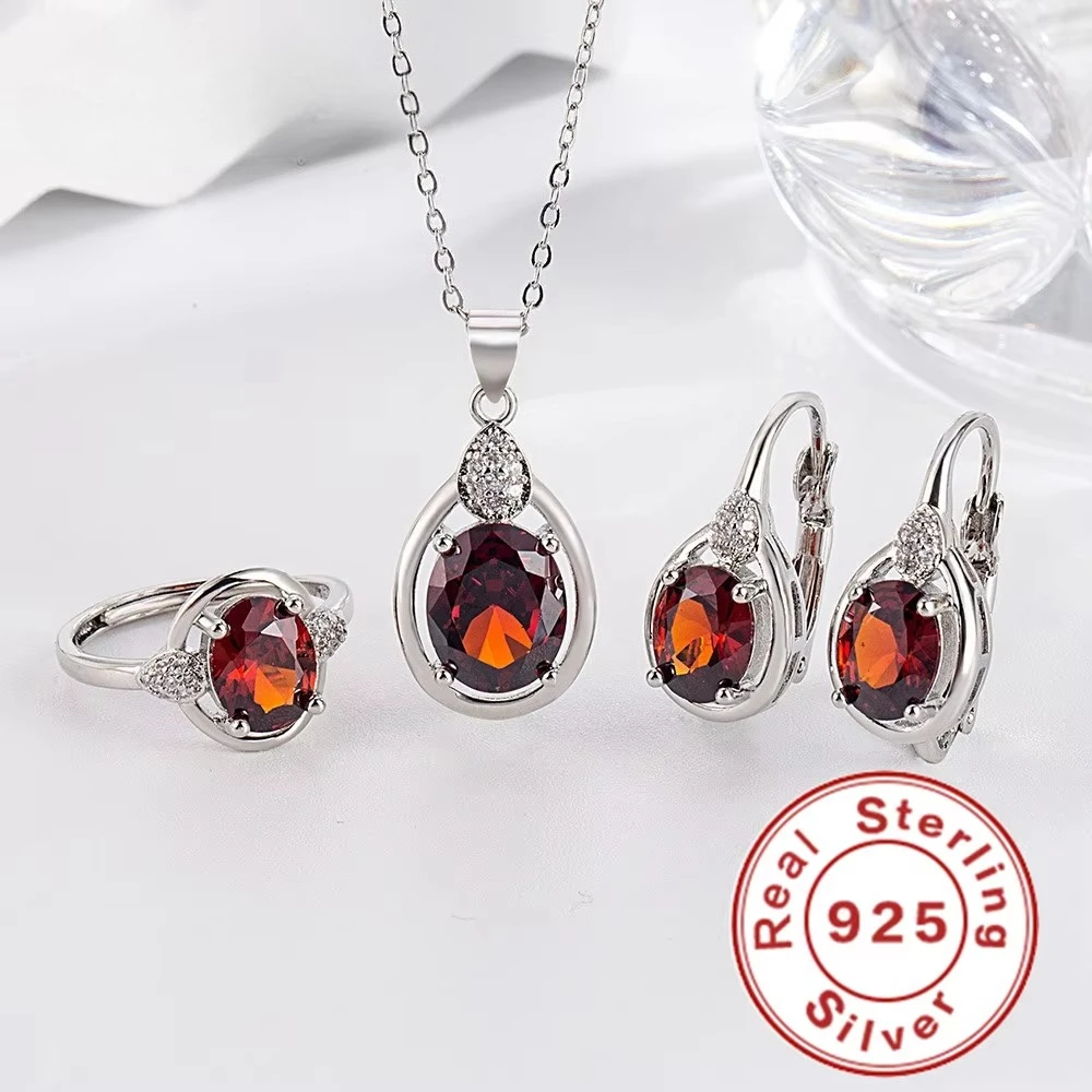 Exquisito conjunto de anillo y pendientes de collar de rubí de Plata de Ley 925 para mujer, joyería para fiesta de compromiso 1