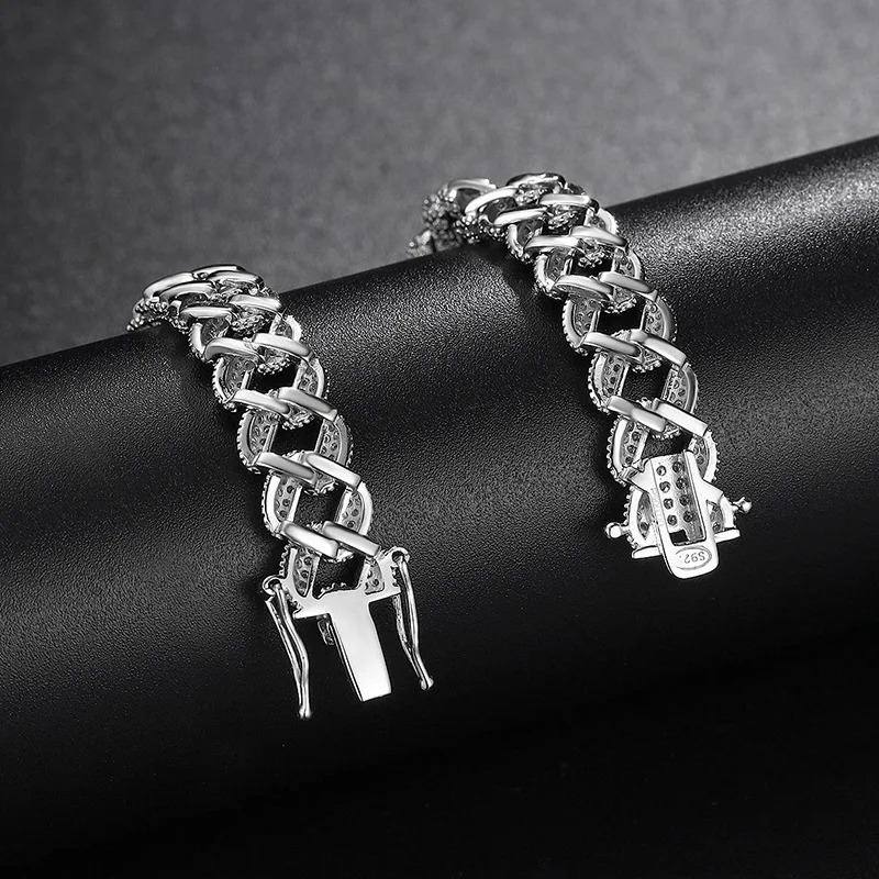 Estilo: pulseras cubanas de moissanita completa para hombre