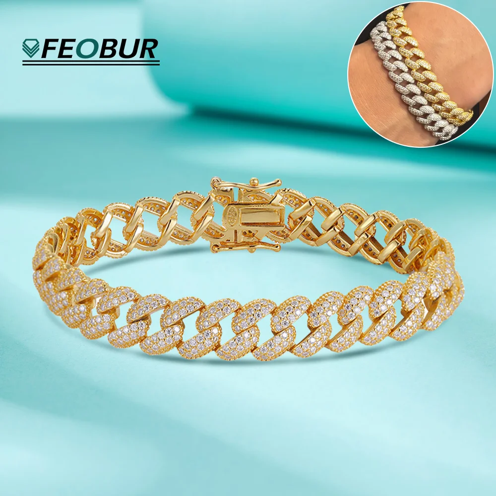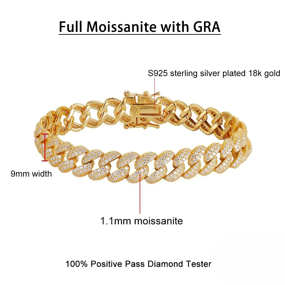 Estilo: pulseras cubanas de moissanita completa para hombre