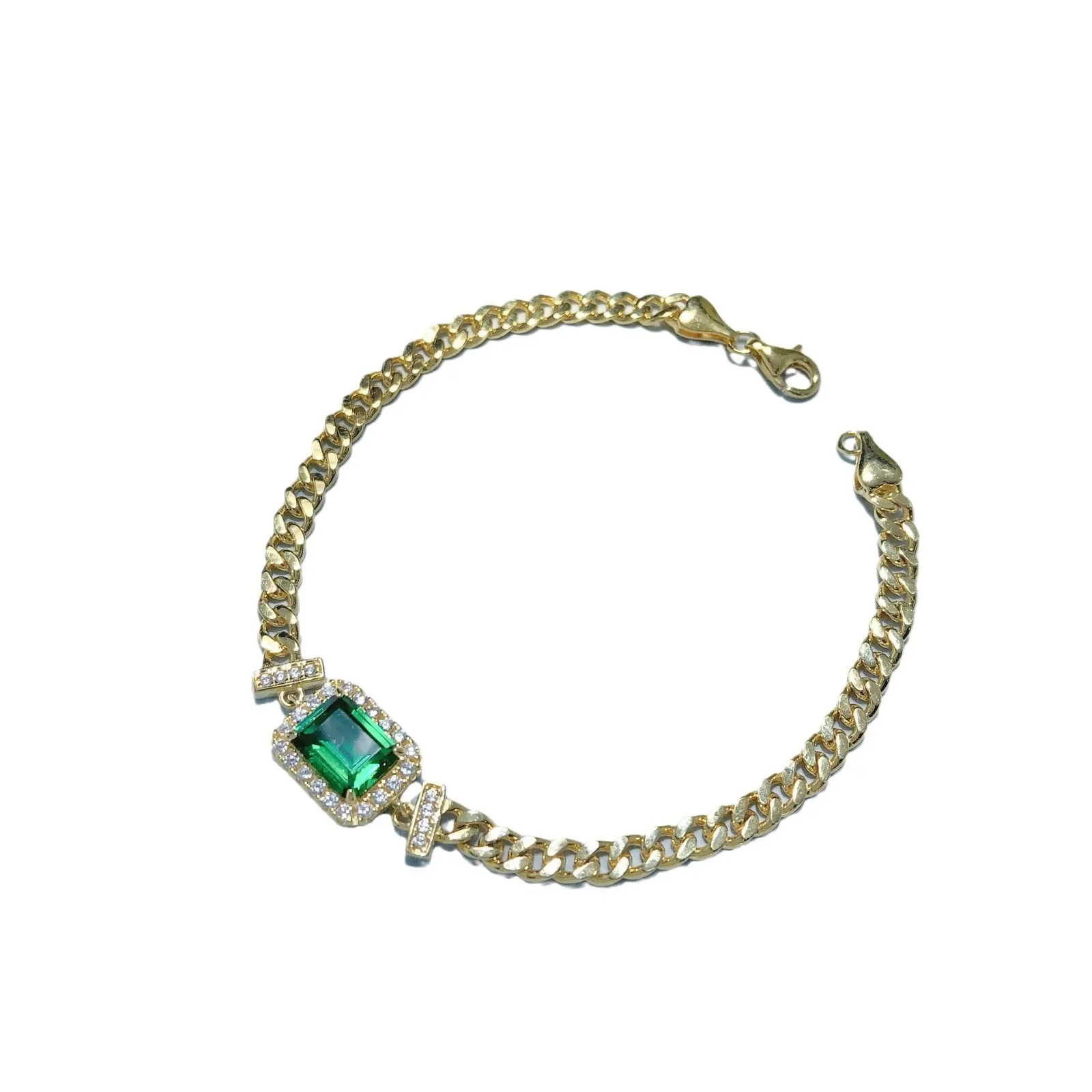 Sé el primero en valorar “Pulsera de Lujo para Mujer, 100% Oro Real de 18k, Estilo Vintage con Esmeraldas y Diamantes, Pulsera Cuadrada con Moissanita”