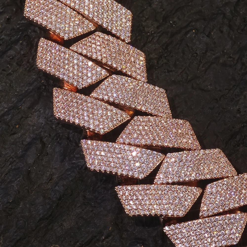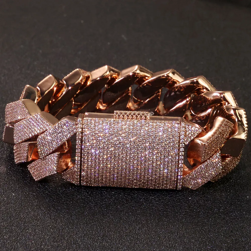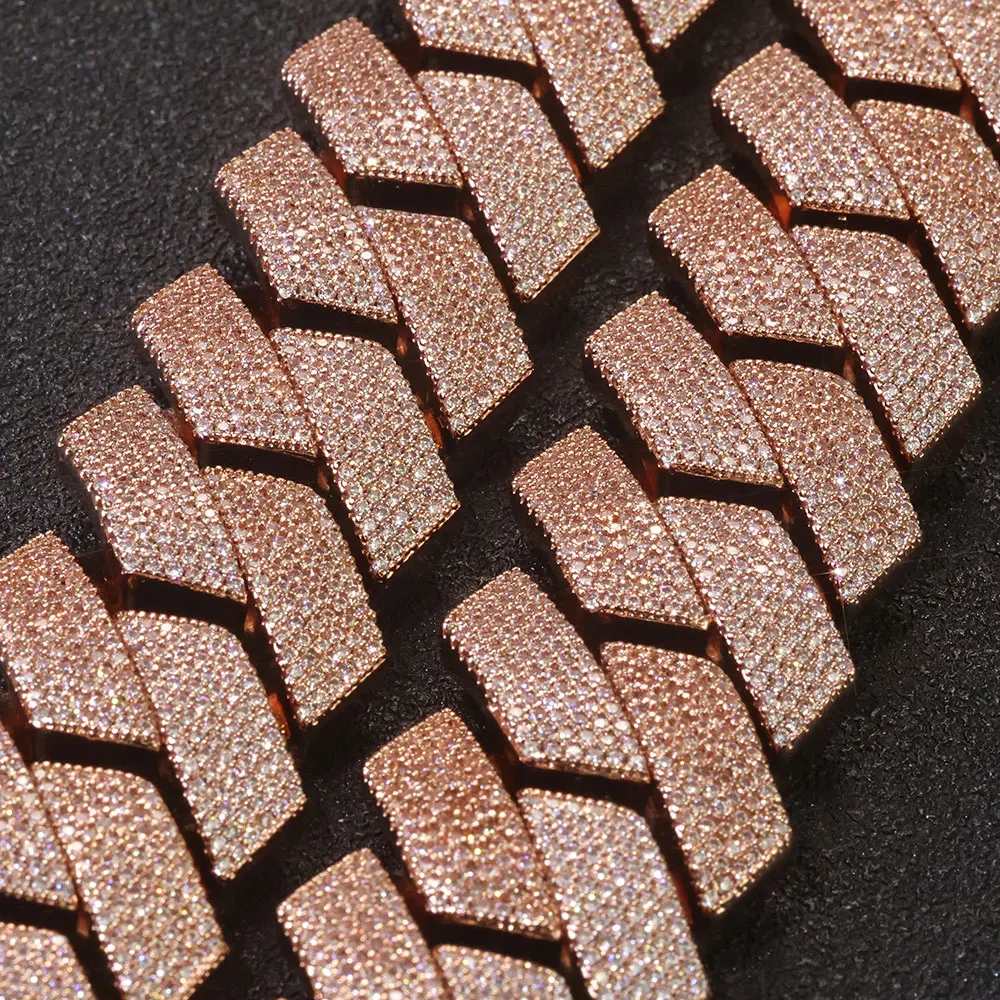 Joyería de Hip Hop, collar helado de oro rosa, grande, grueso, pesado, 25mm, 6 filas, piedra Cz ostentosa, collar de cadena de eslabones cubanos  regalo para hombres