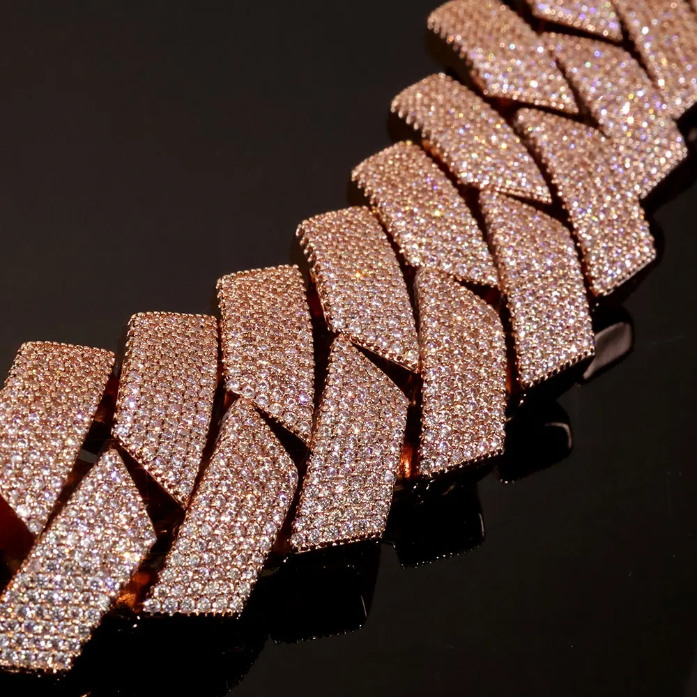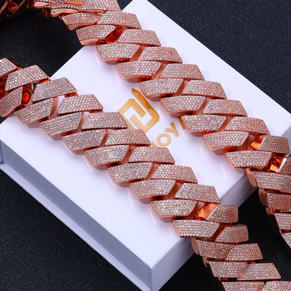 Joyería de Hip Hop, collar helado de oro rosa, grande, grueso, pesado, 25mm, 6 filas, piedra Cz ostentosa, collar de cadena de eslabones cubanos  regalo para hombres