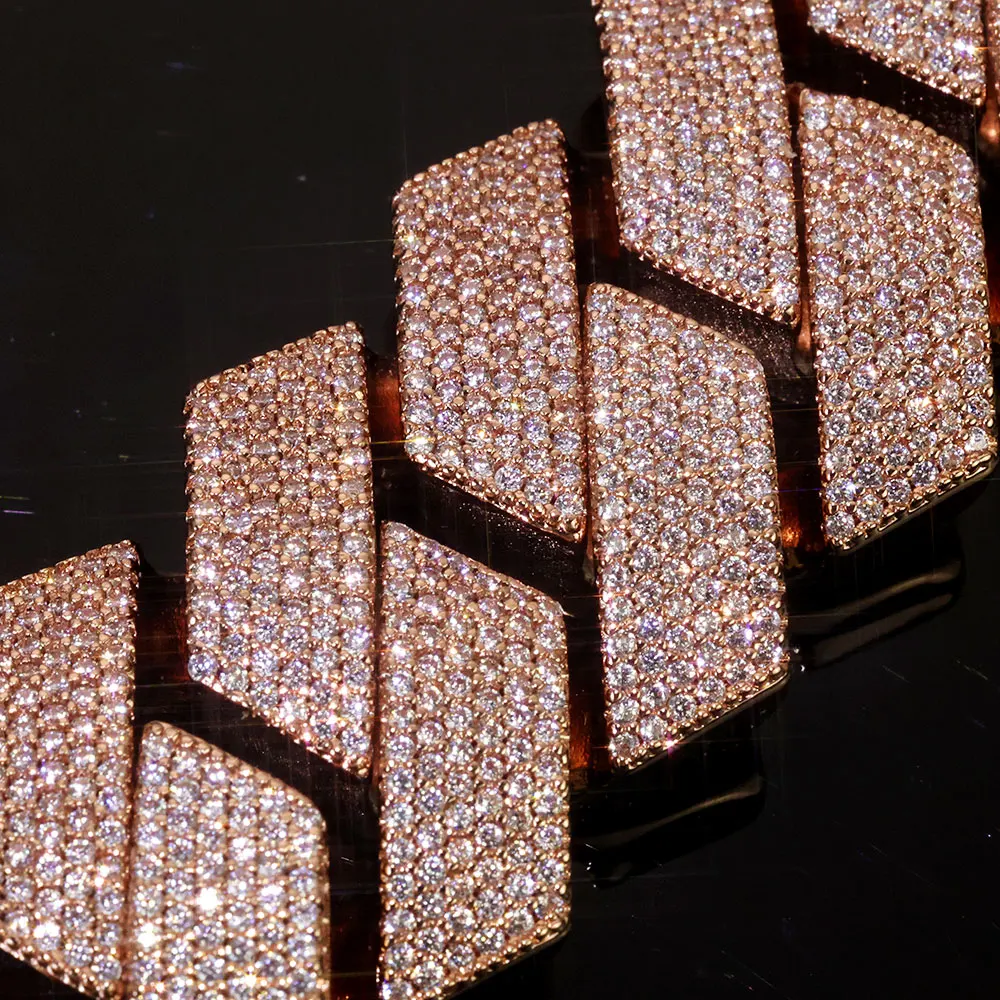 Increíble cadena pesada parece de oro rosado real con diamantes reales 100% recomendable.