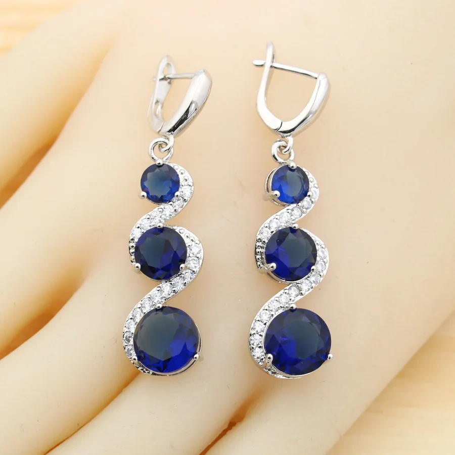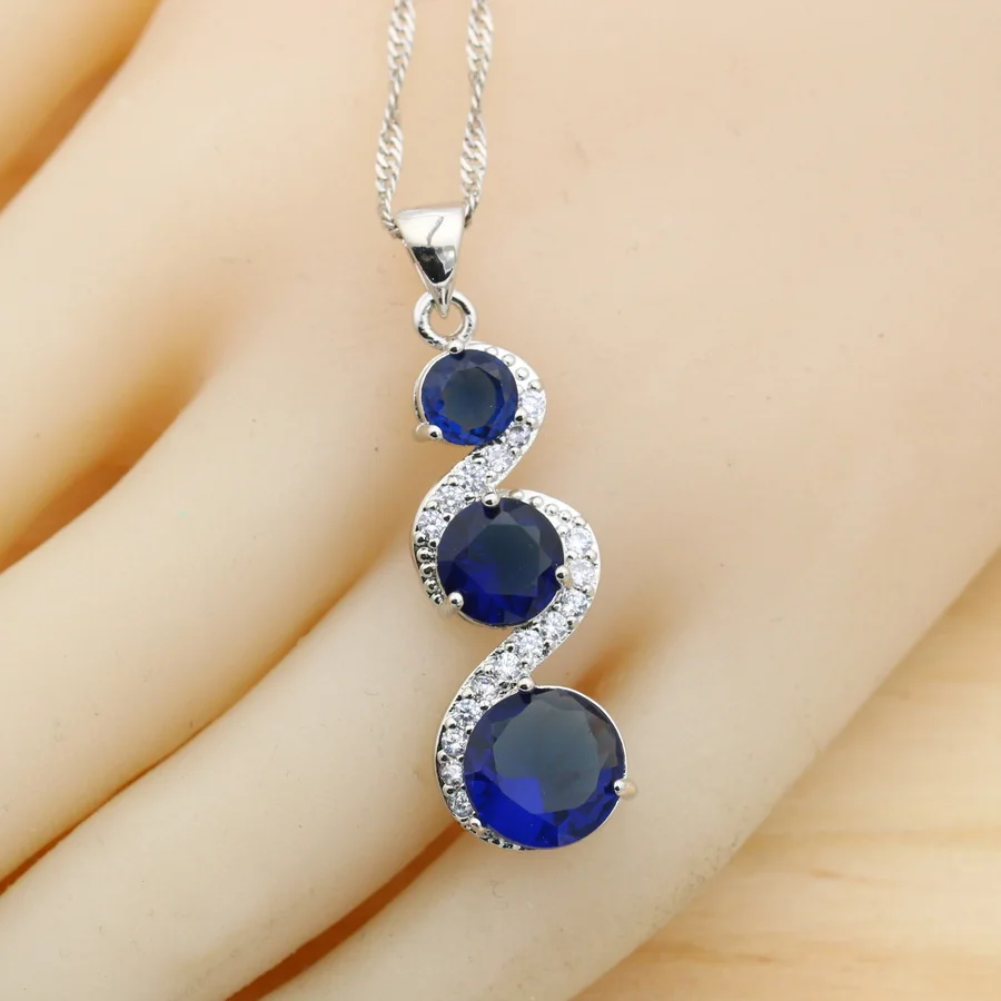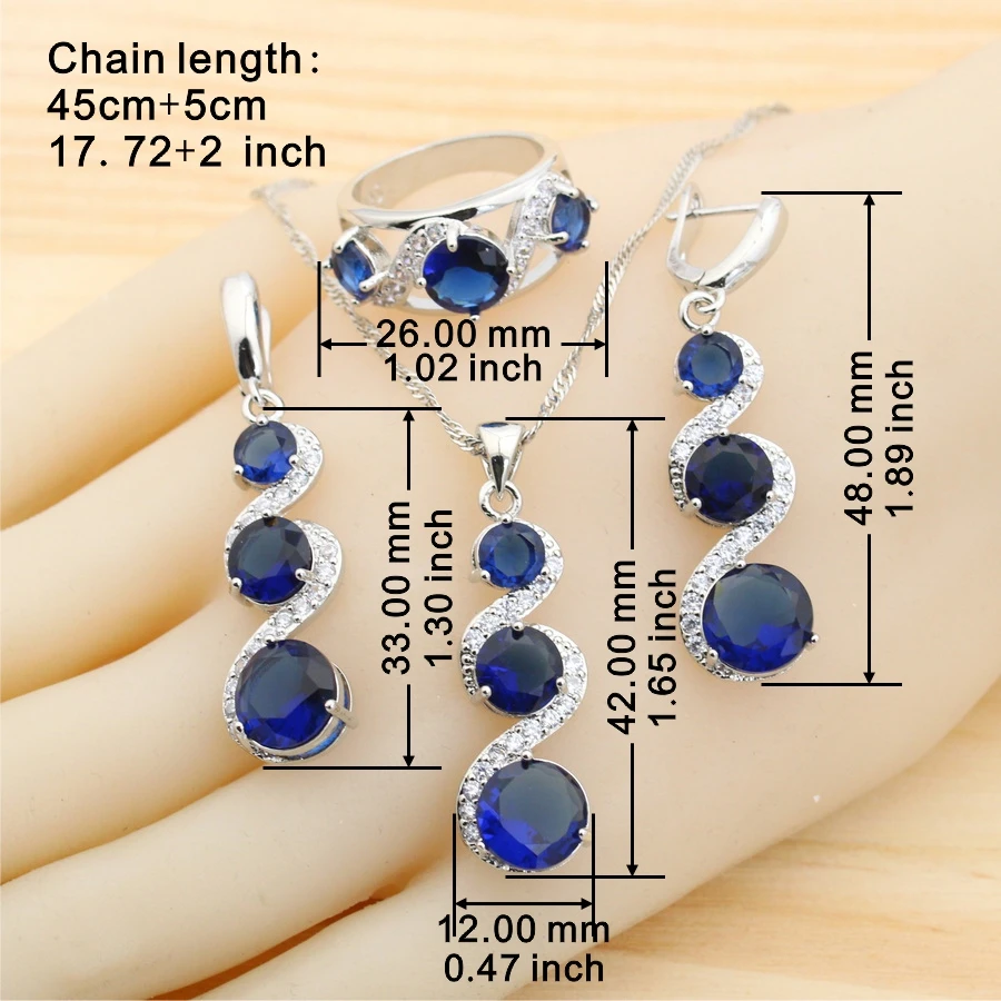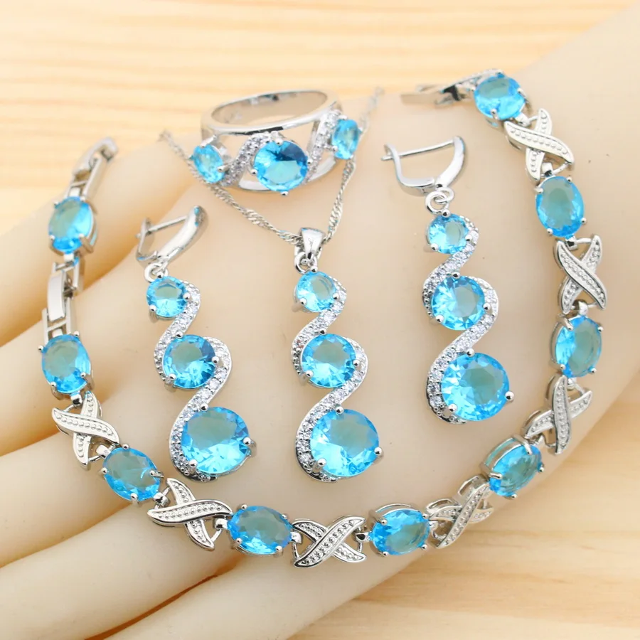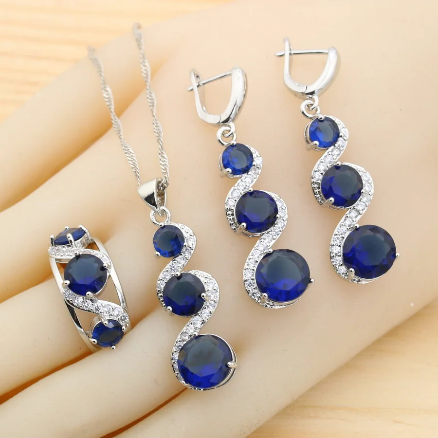 Juegos de joyas para mujer de plata 925 con circonita azul clásica, pendientes, collar, colgante, anillo, pulsera, regalo de boda 1