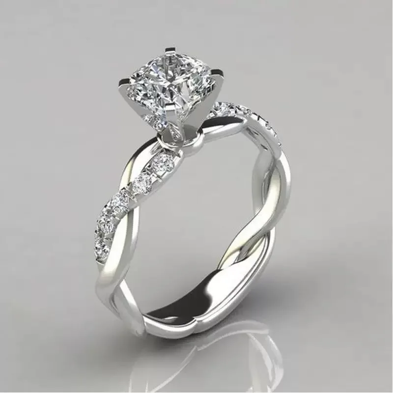 Nombre del producto: Anillo de diamante cuadrado de princesa de oro rosa de aleación de 18k de nuevo estilo más vendido, anillo cruzado de compromiso occidental