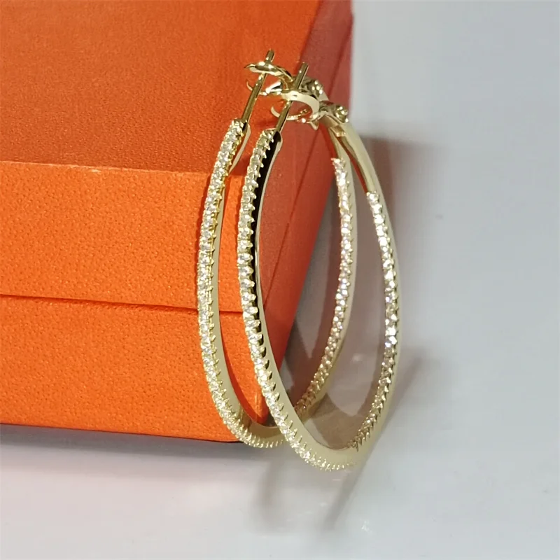 Senlissi -Pendientes de aro de diamantes de oro de 18 quilates para mujer, pendientes de moda originales de Plata de Ley 925, anillos , oro real