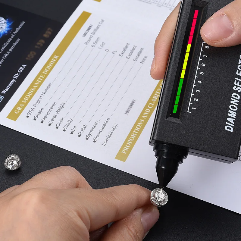 Buenos moissanitas auténticos, con certificados y verificados con probador de diamantes.
