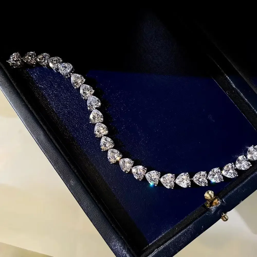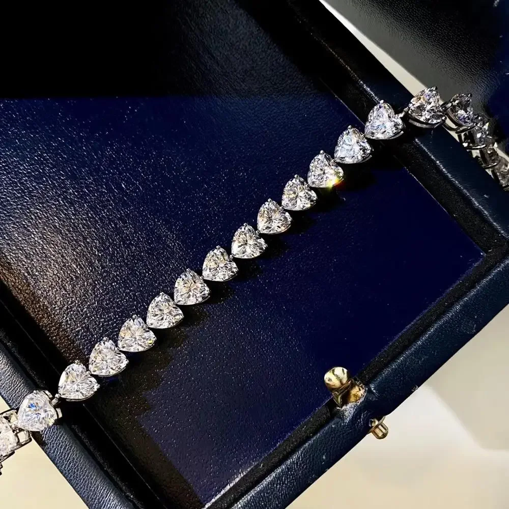 Pulsera de diamantes de laboratorio con corte de corazón de 7mm, 100% Plata de Ley 925 auténtica, brazaletes de compromiso para boda, joyería para mujer 1
