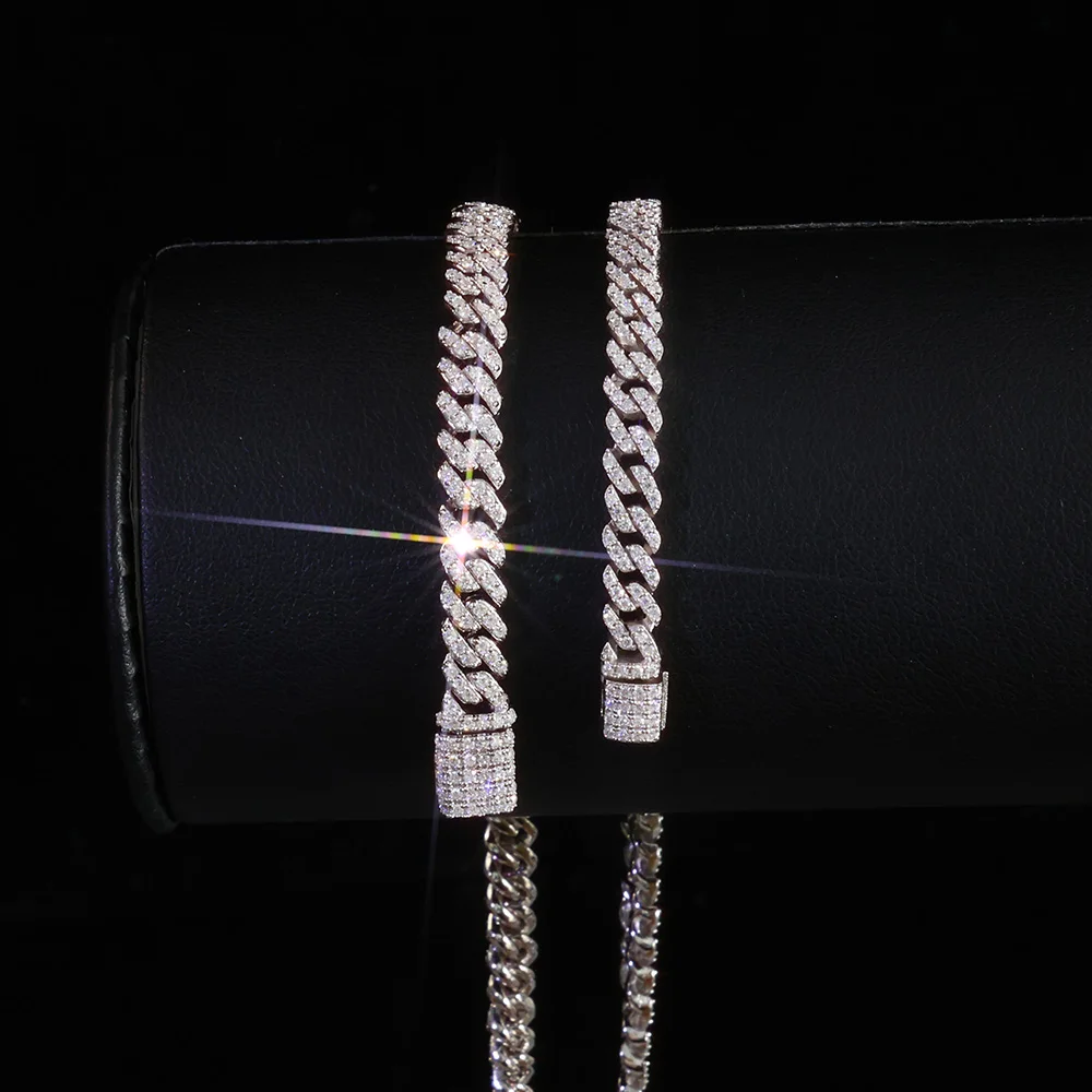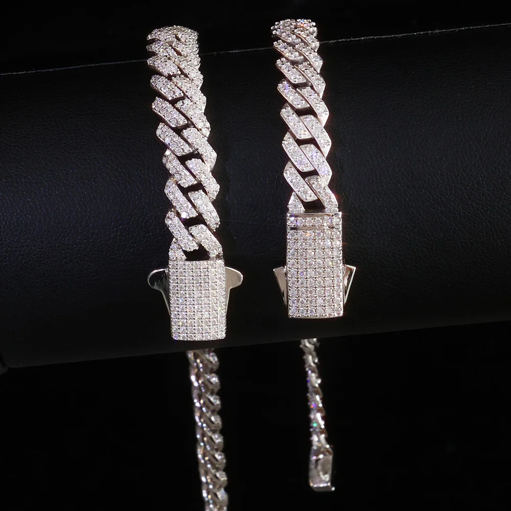 Pulsera de moissanita 925 de 5/6/8/10MM de ancho para mujeres y hombres, pulsera de cadena cubana VVS de Plata de Ley, joyería de Hip Hop Unisex 1