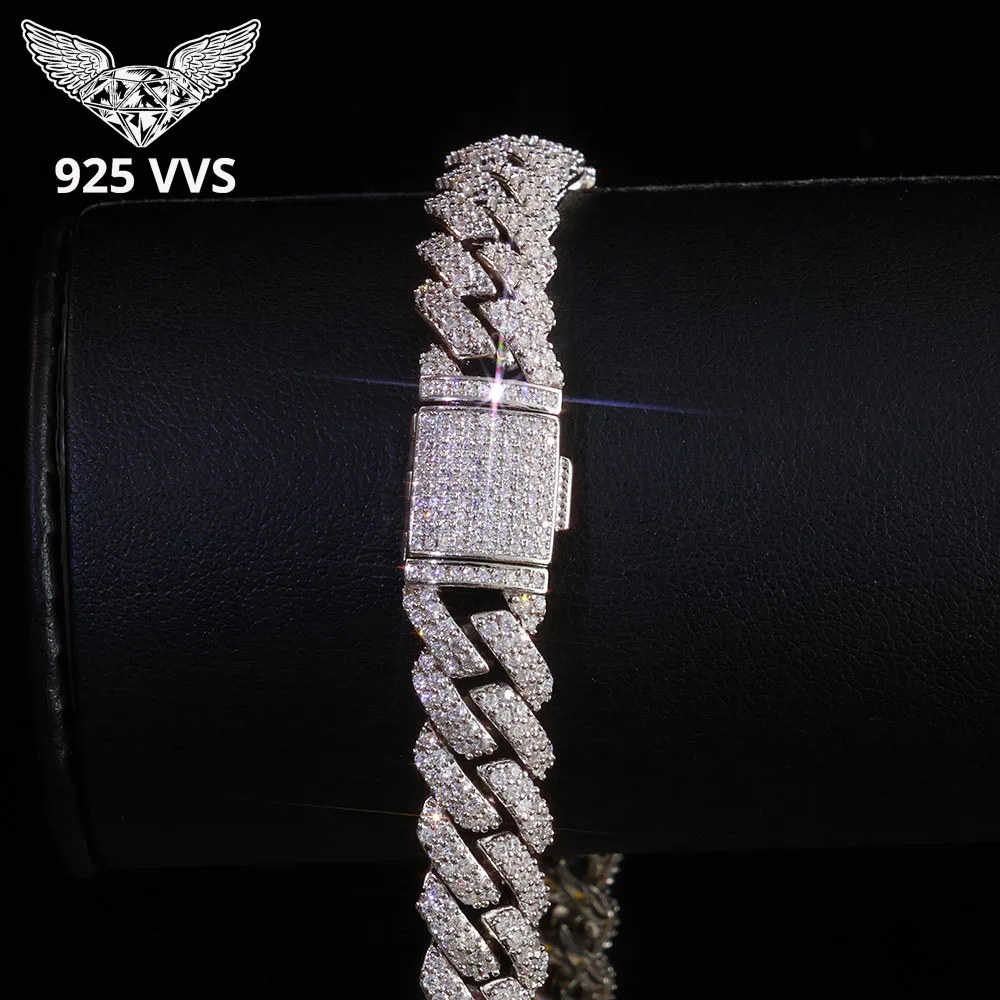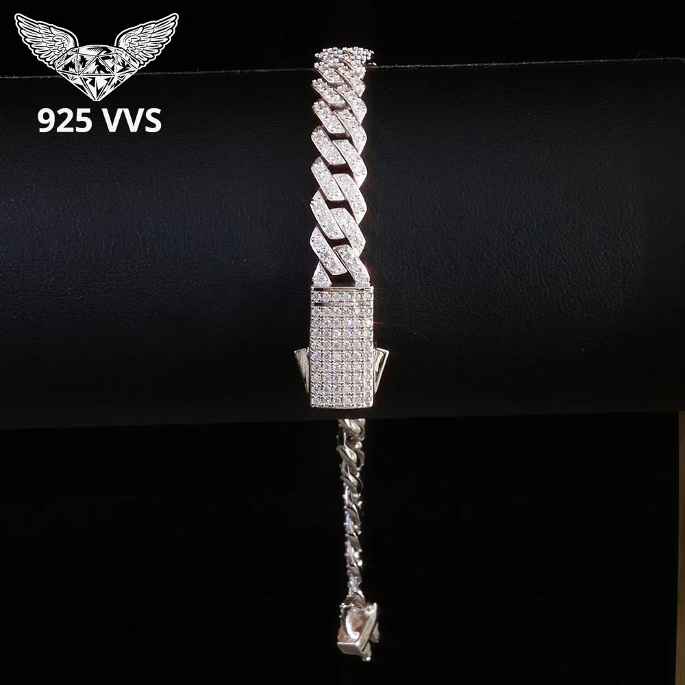 Pulsera de moissanita 925 de 5/6/8/10MM de ancho para mujeres y hombres, pulsera de cadena cubana VVS de Plata de Ley, joyería de Hip Hop Unisex
