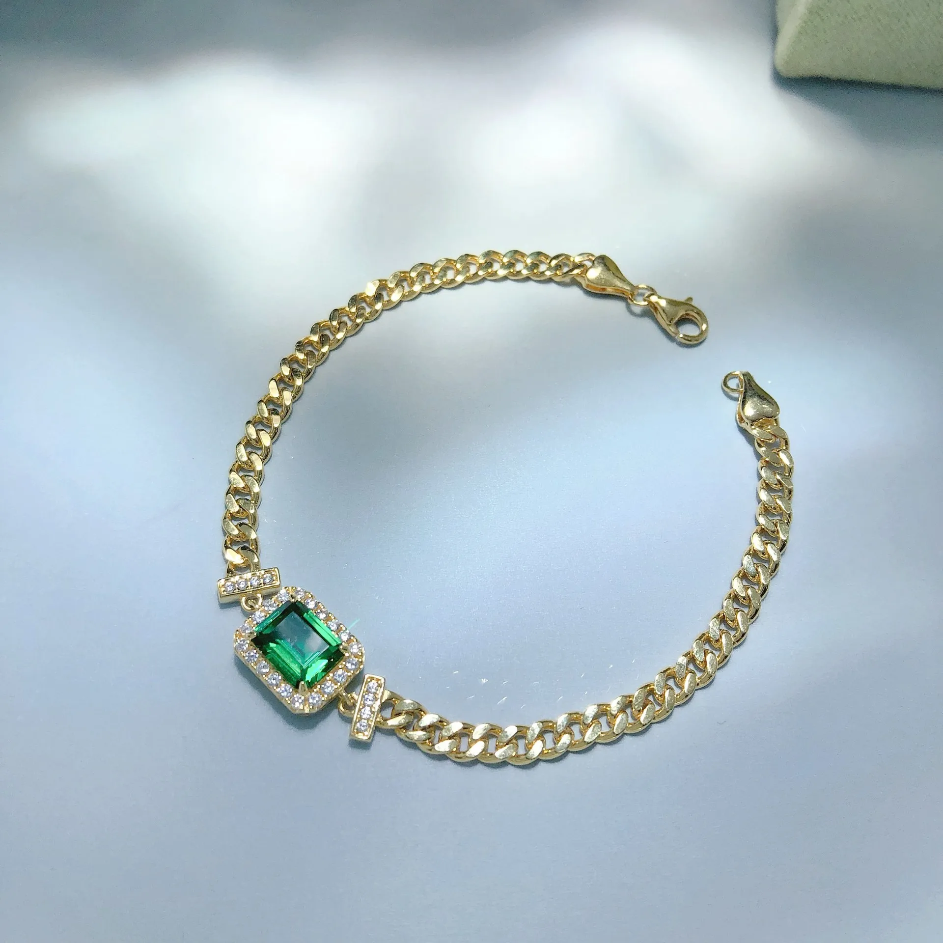 1 valoración en Pulsera de moissanita cuadrada con diamantes de Esmeralda Vintage para mujer de oro 100% auténtico de lujo de 18k
