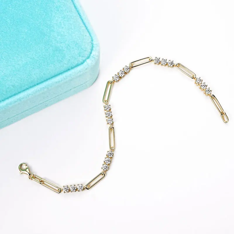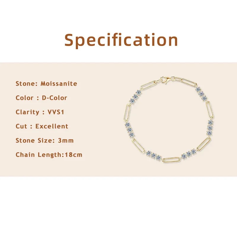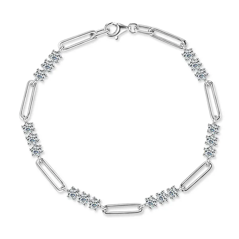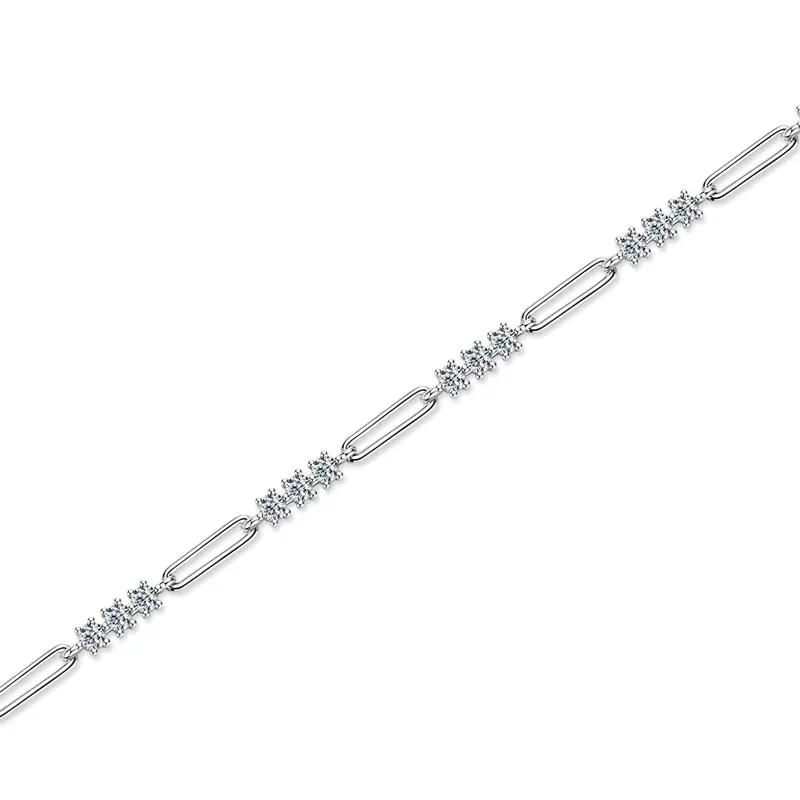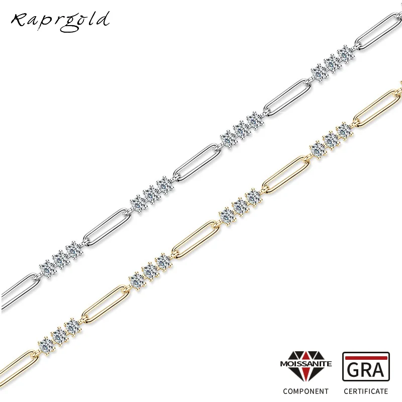 RAPRGOLD D Color Moissanite Bracelet for Women Girls S925 Sterling Silver Bracelets Chain Wedding Jewelry Gifts with Certificate