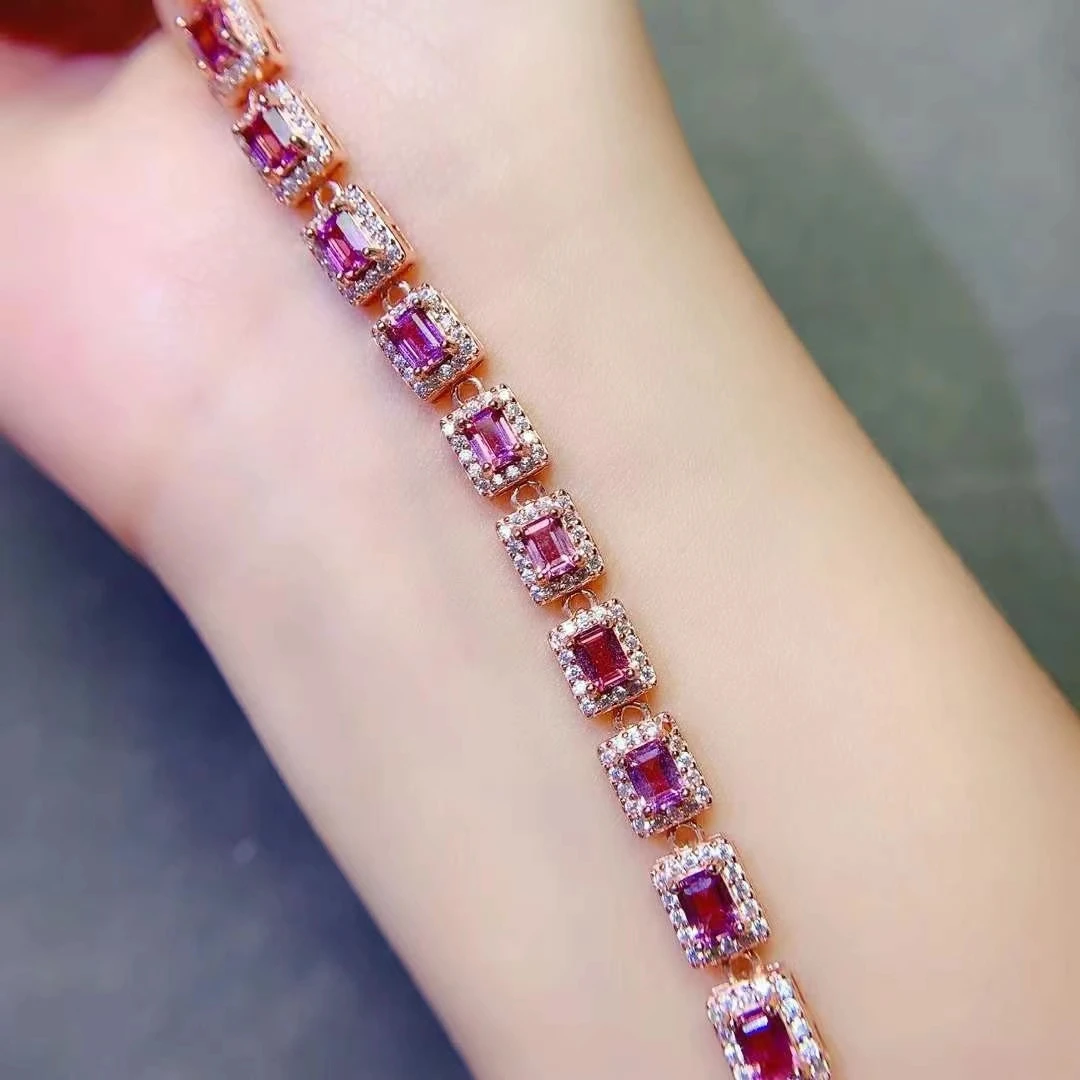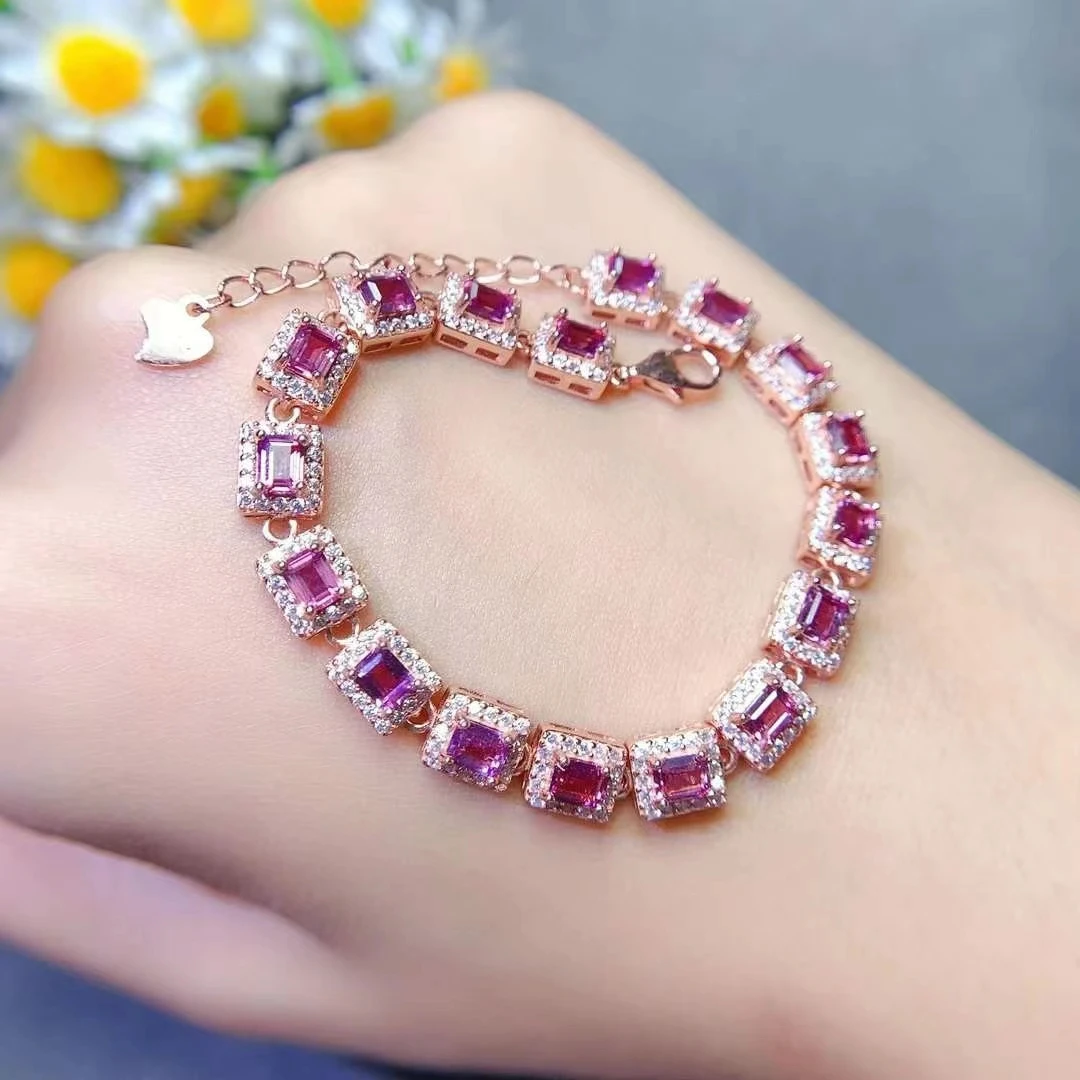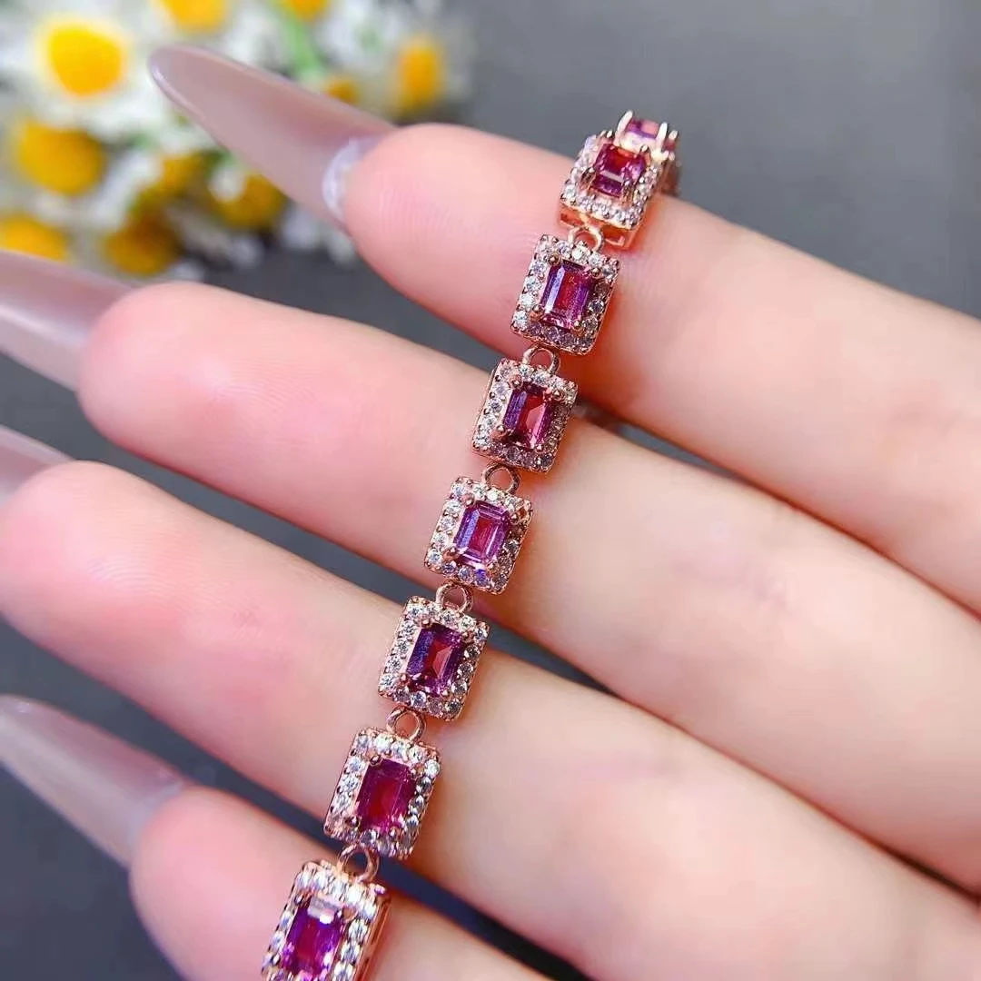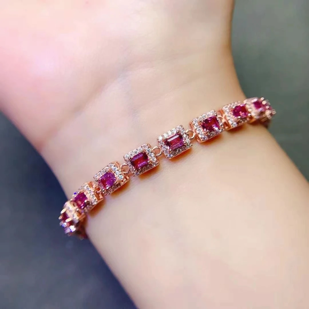 Pulsera de piedras preciosas de lujo para boda, 3mm x 4mm, granate Natural de 3 quilates, chapado en oro, joyería de plata 925 granate