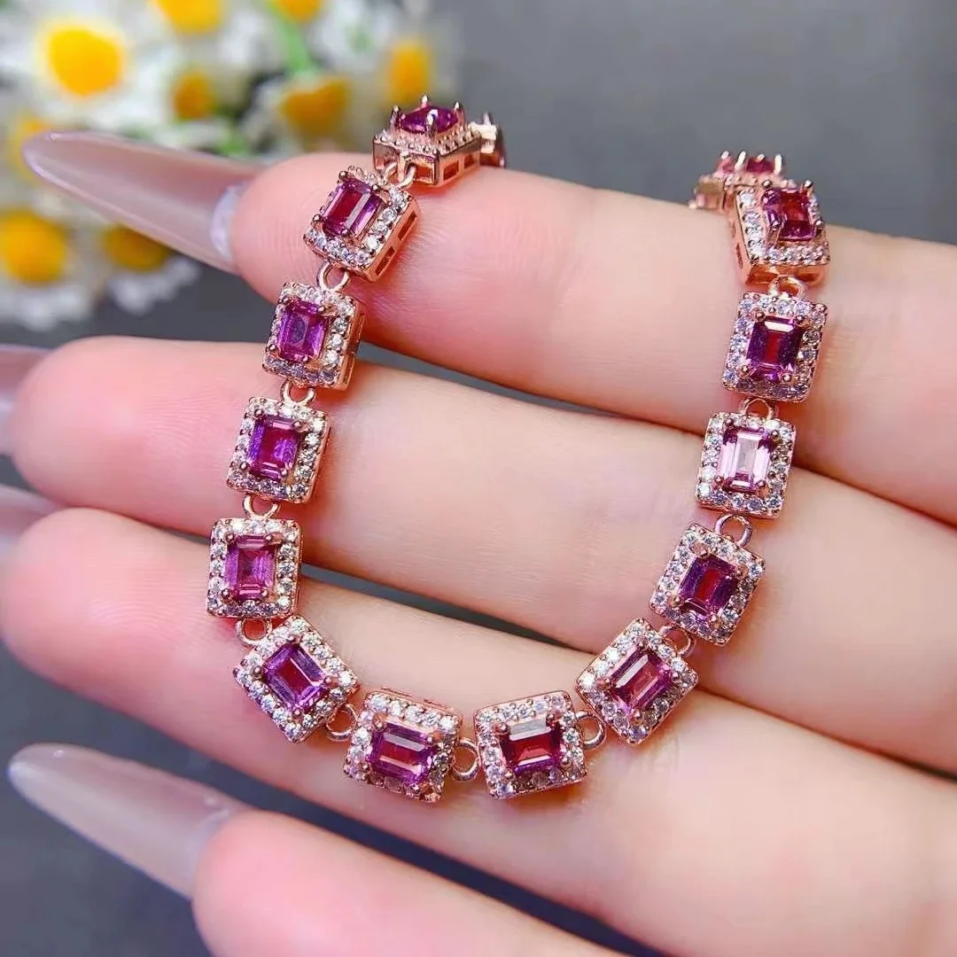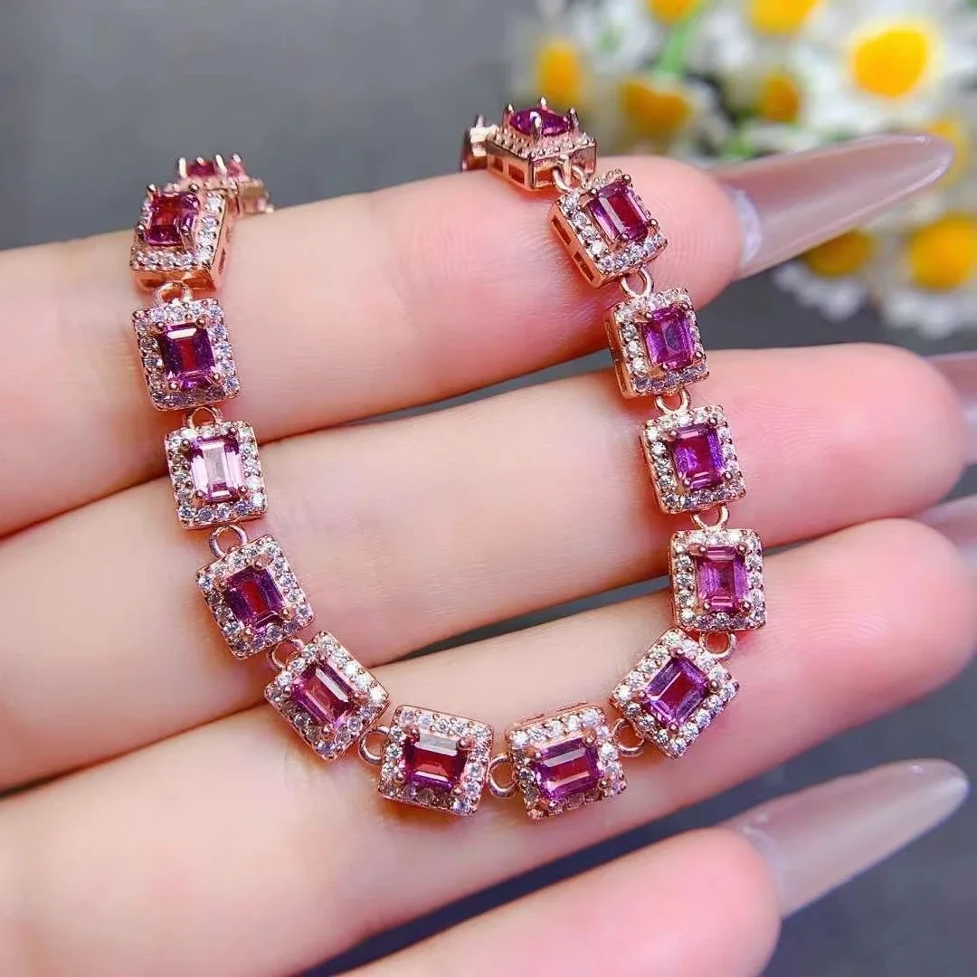 Pulsera de piedras preciosas de lujo para boda, 3mm x 4mm, granate Natural de 3 quilates, chapado en oro, joyería de plata 925 granate
