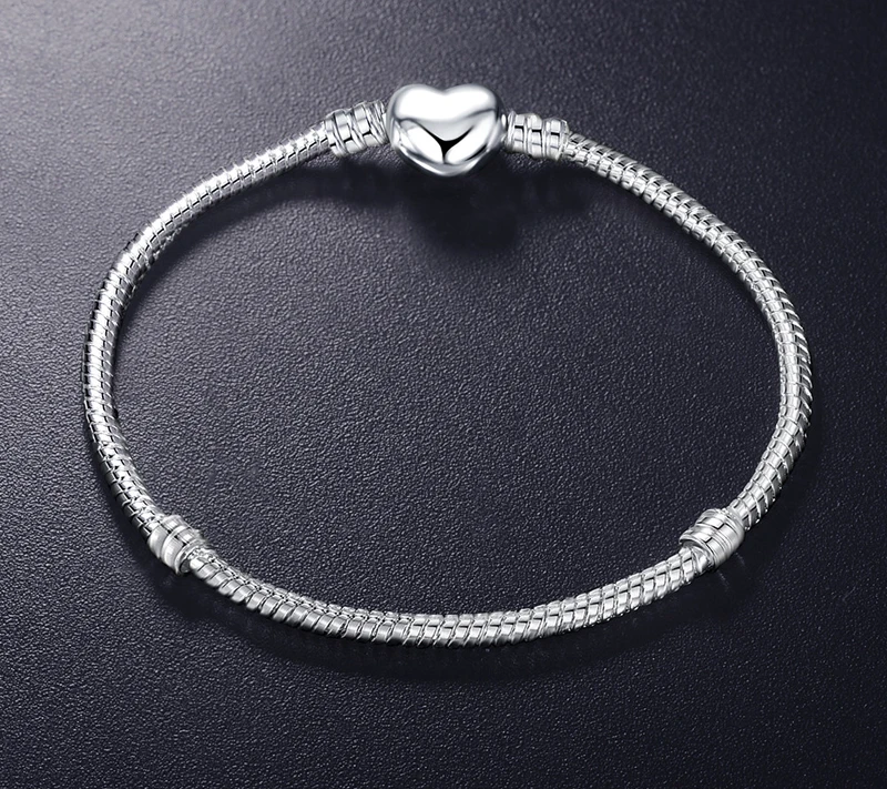 Pulsera de plata 925 Original con forma de corazón, brazalete con cuentas de serpiente, regalo para mujer