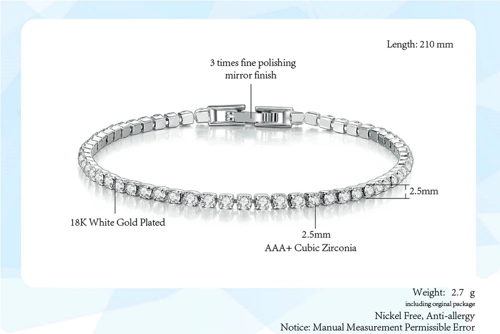 Sé el primero en valorar “Pulsera de tenis de circonia de 2,5mm para mujer, abalorio de cristal de diseñador, pulsera de cadena fina de tenis en la mano, joyería de boda KC128”