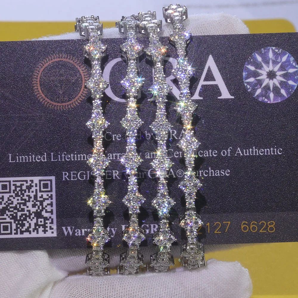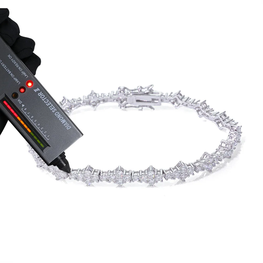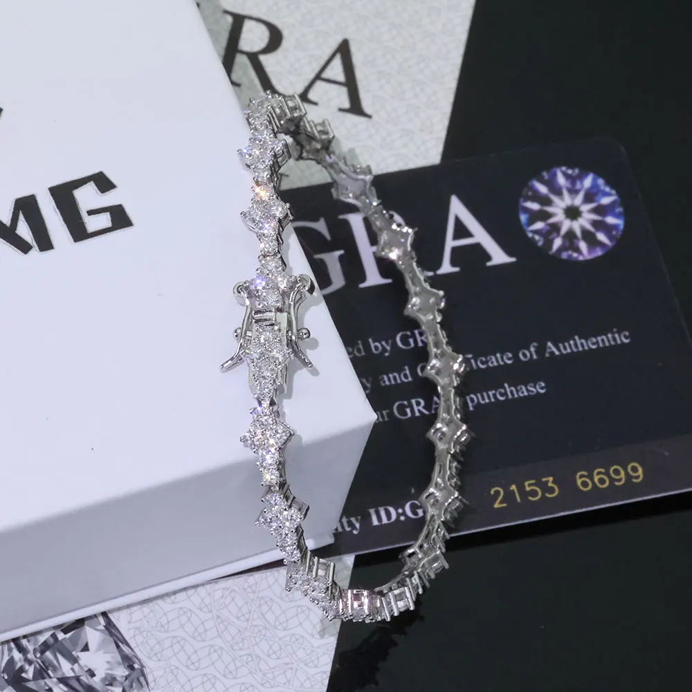 8 valoraciones en pulsera de tenis de plata 925 VVS Moissanite para hombres y mujeres, cadena de tenis de plata de ley VVS helada con hebilla de resorte