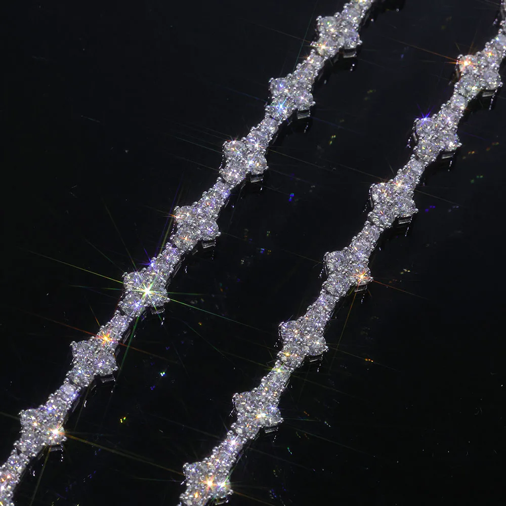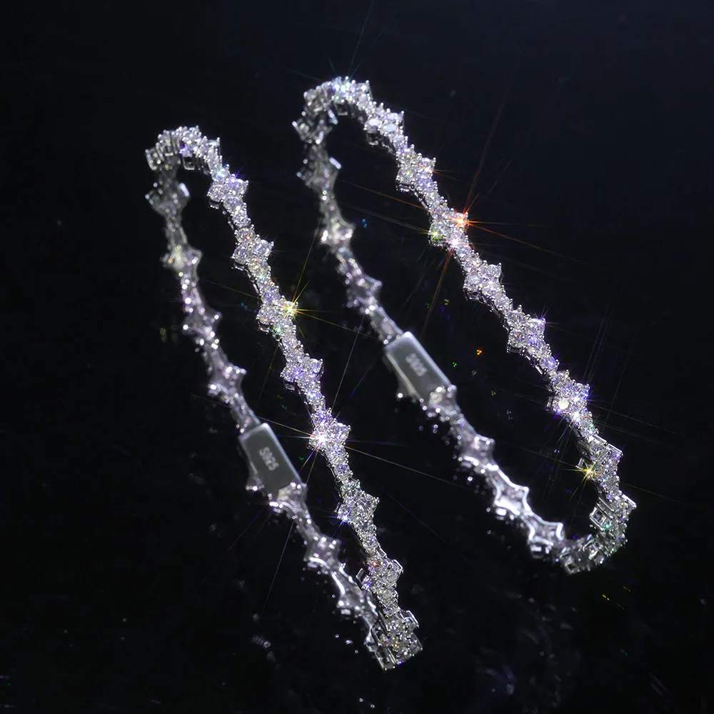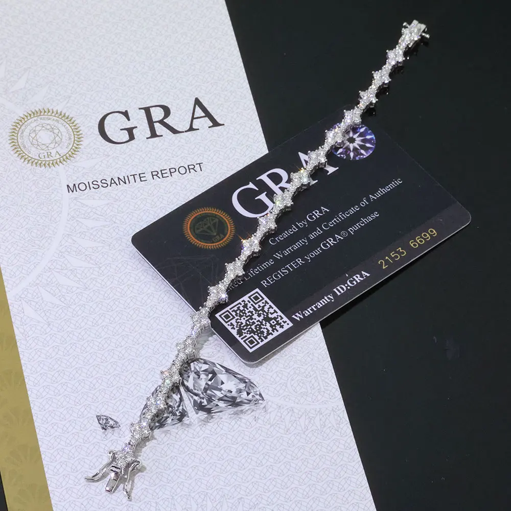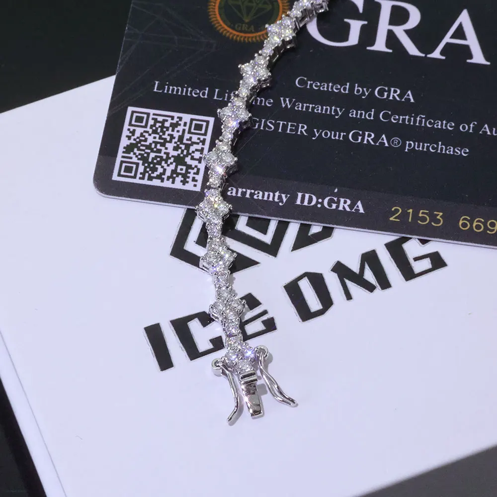8 valoraciones en pulsera de tenis de plata 925 VVS Moissanite para hombres y mujeres, cadena de tenis de plata de ley VVS helada con hebilla de resorte