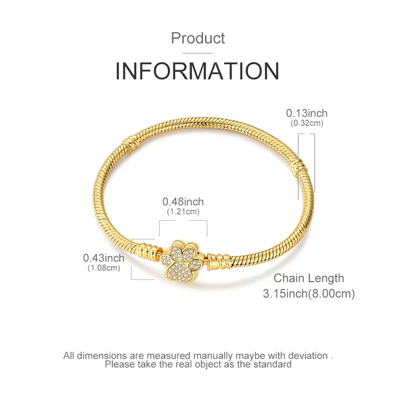 Pulsera Original de Plata de Ley 925 con Zirconia en Forma de Huella de Mascota Dorada, de 17-20 CM, Compatible con Dijes y Colgantes Originales, para Mujer, Regalo de Joyería DIY 1