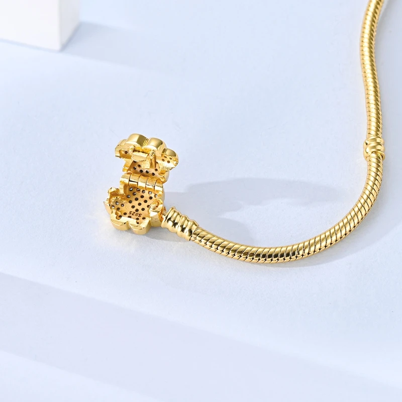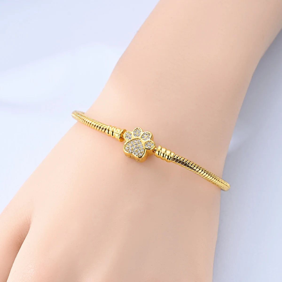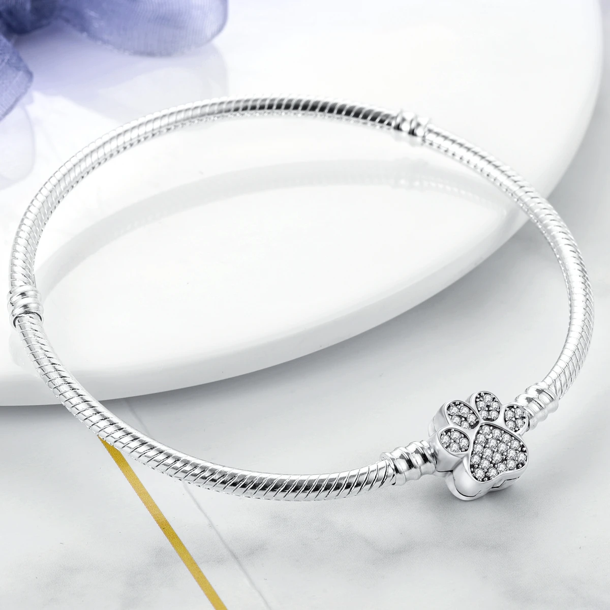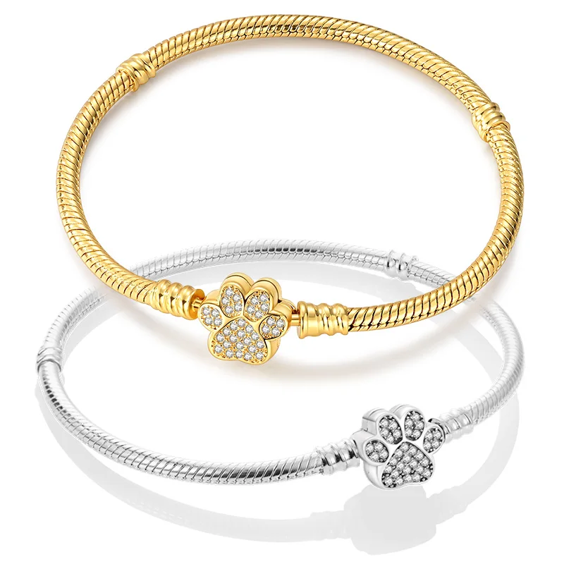 Pulsera Original de Plata de Ley 925 con Zirconia en Forma de Huella de Mascota Dorada, de 17-20 CM, Compatible con Dijes y Colgantes Originales, para Mujer, Regalo de Joyería DIY 1