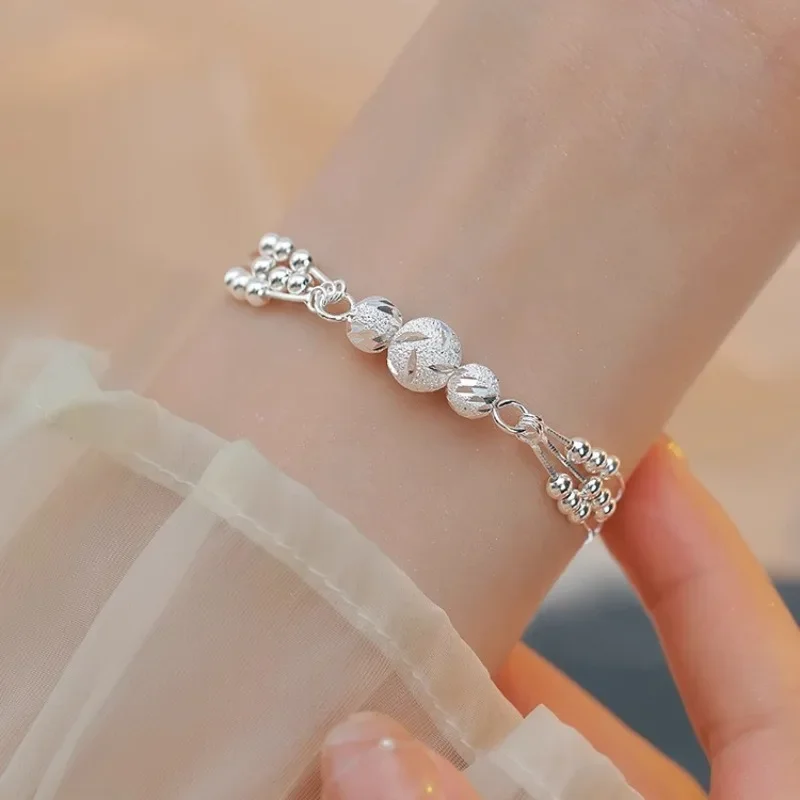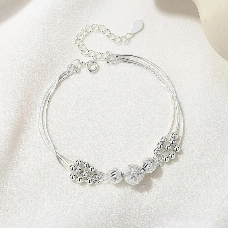 8 valoraciones en Pulseras finas de Plata de Ley 925 con cuentas de la suerte para mujer, pulsera ajustable multicapa de diseñador de lujo, joyería para fiesta y boda