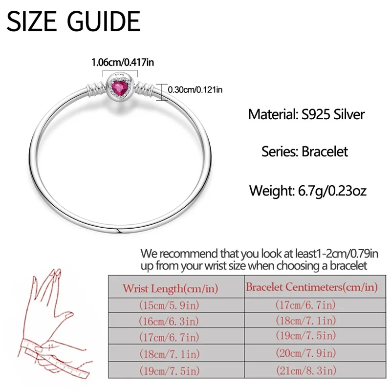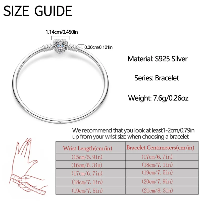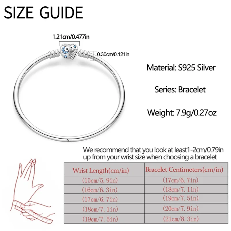 10 valoraciones en Pulseras originales de plata 925 de 17-20CM, trayectoria estrellada de Luna y estrella, pulseras de circón en forma de corazón aptas para dijes DIY, joyería de cumpleaños