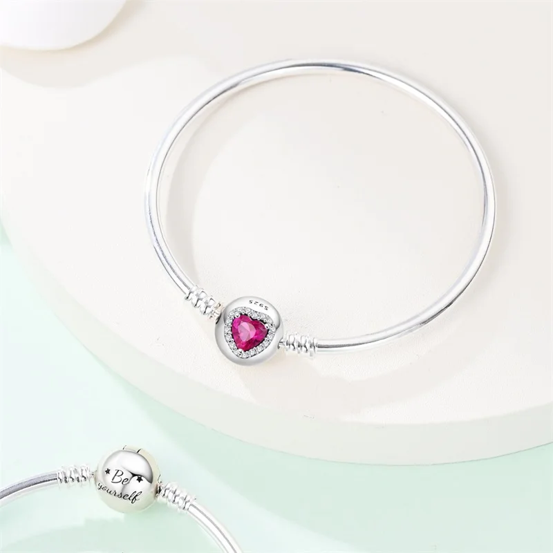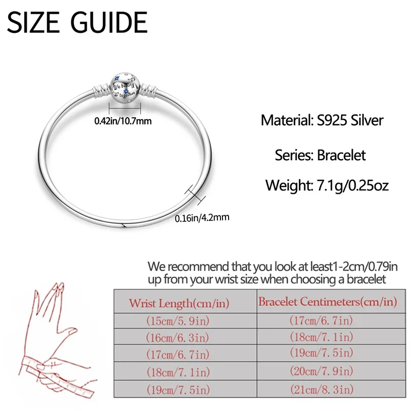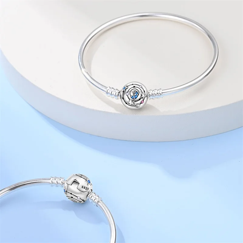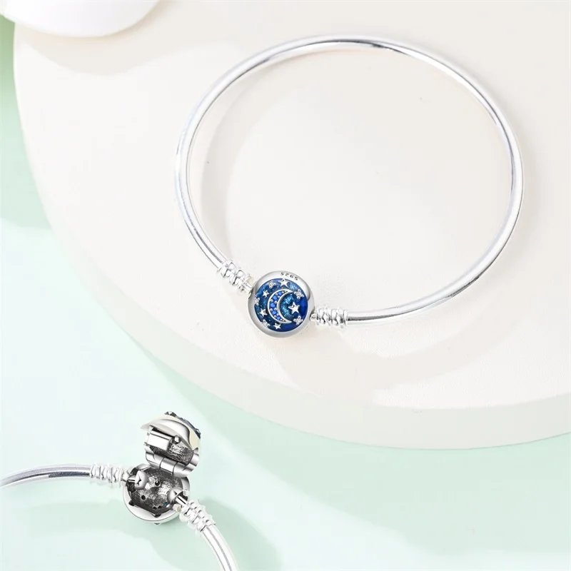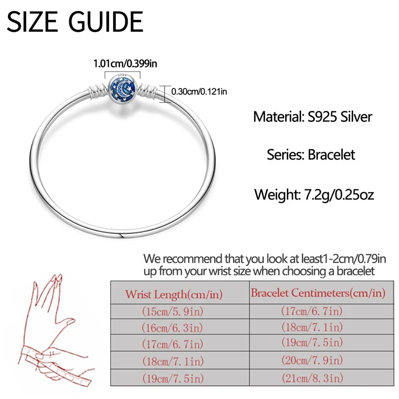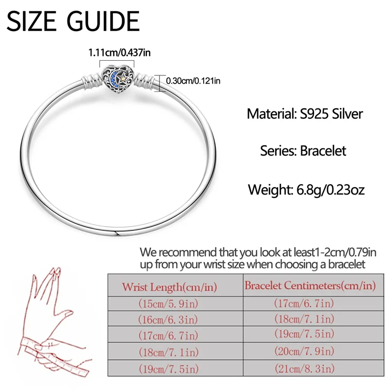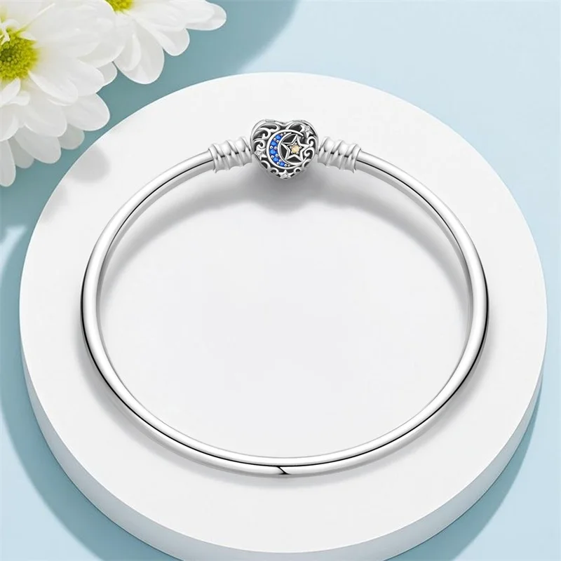 10 valoraciones en Pulseras originales de plata 925 de 17-20CM, trayectoria estrellada de Luna y estrella, pulseras de circón en forma de corazón aptas para dijes DIY, joyería de cumpleaños