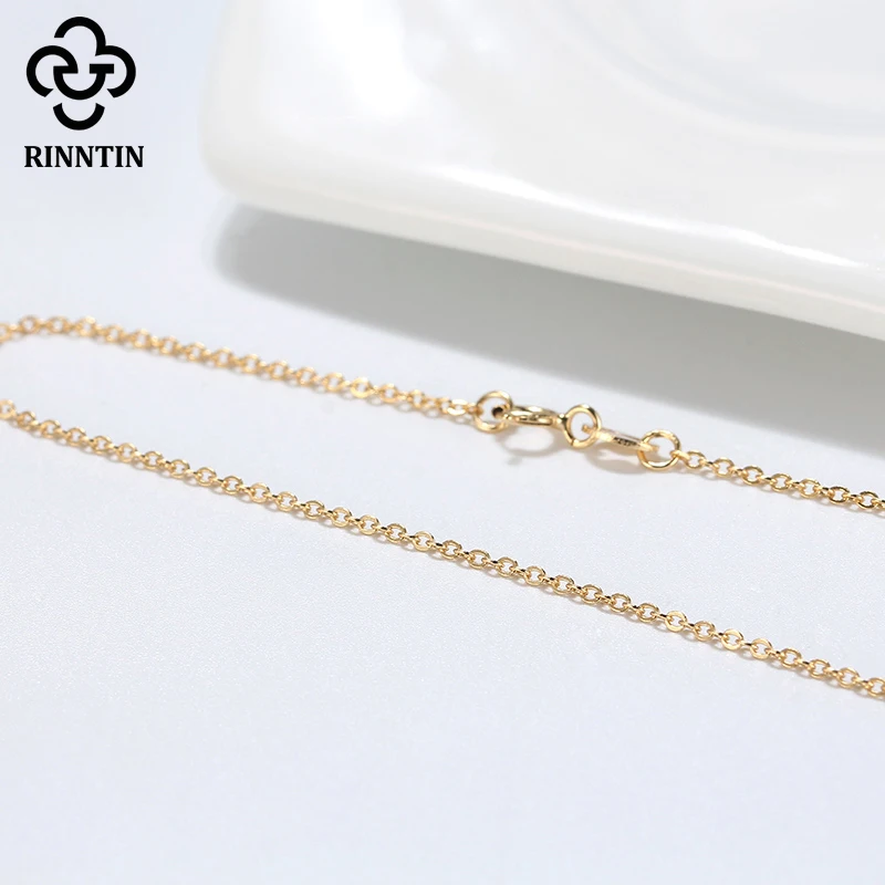 Rinntin, oro de 18 quilates, Plata de Ley 925, cadena de eslabones de Cable a la moda, collar para mujer, cadena de cuello fino, accesorios, joyerÃa SC06